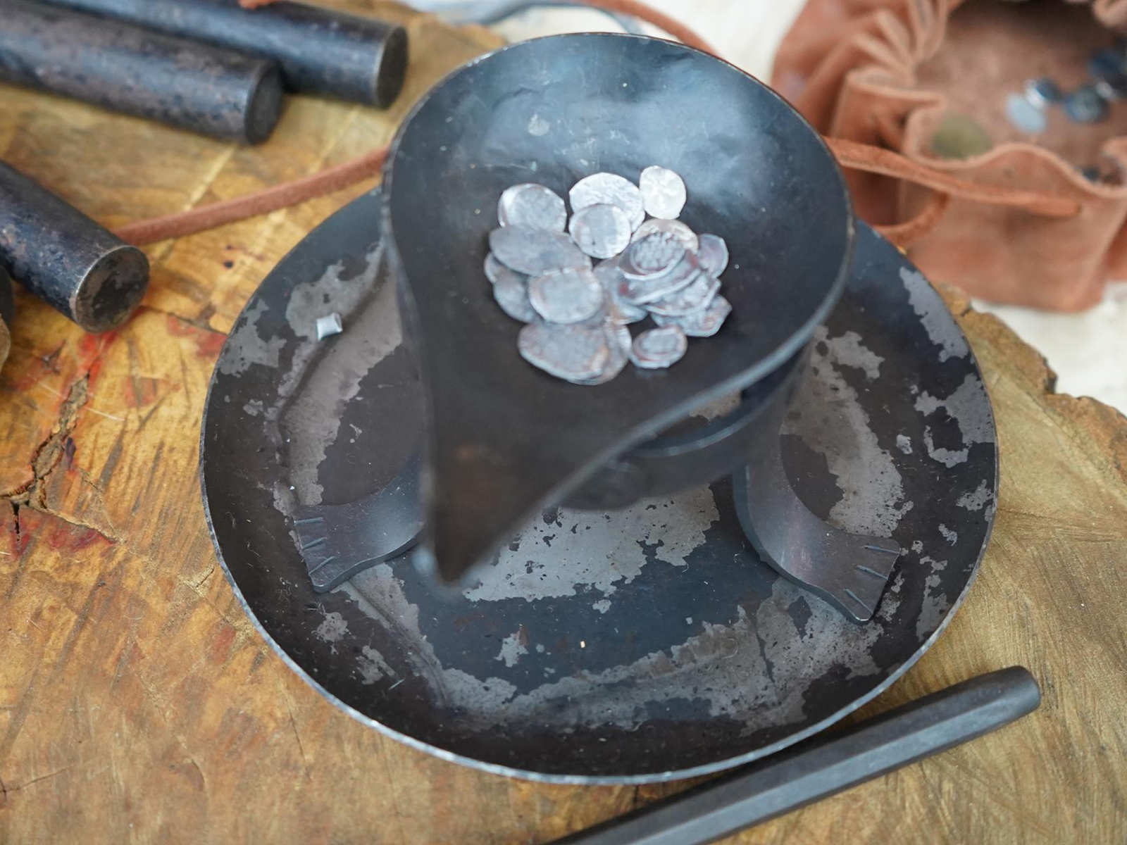 Особый интерес у гостей парка вызвал мастер-класс по реконструкции чеканки монет XVII века. Его провел Александр Лазутин, специалист по работе с молодежью из ступинского Молодежного центра.