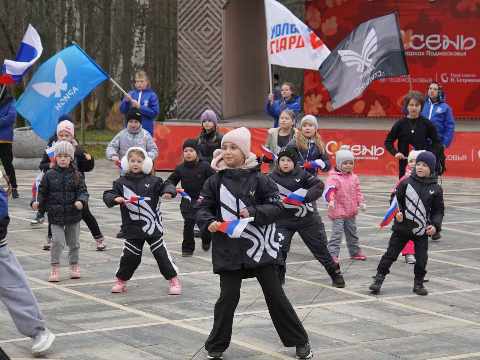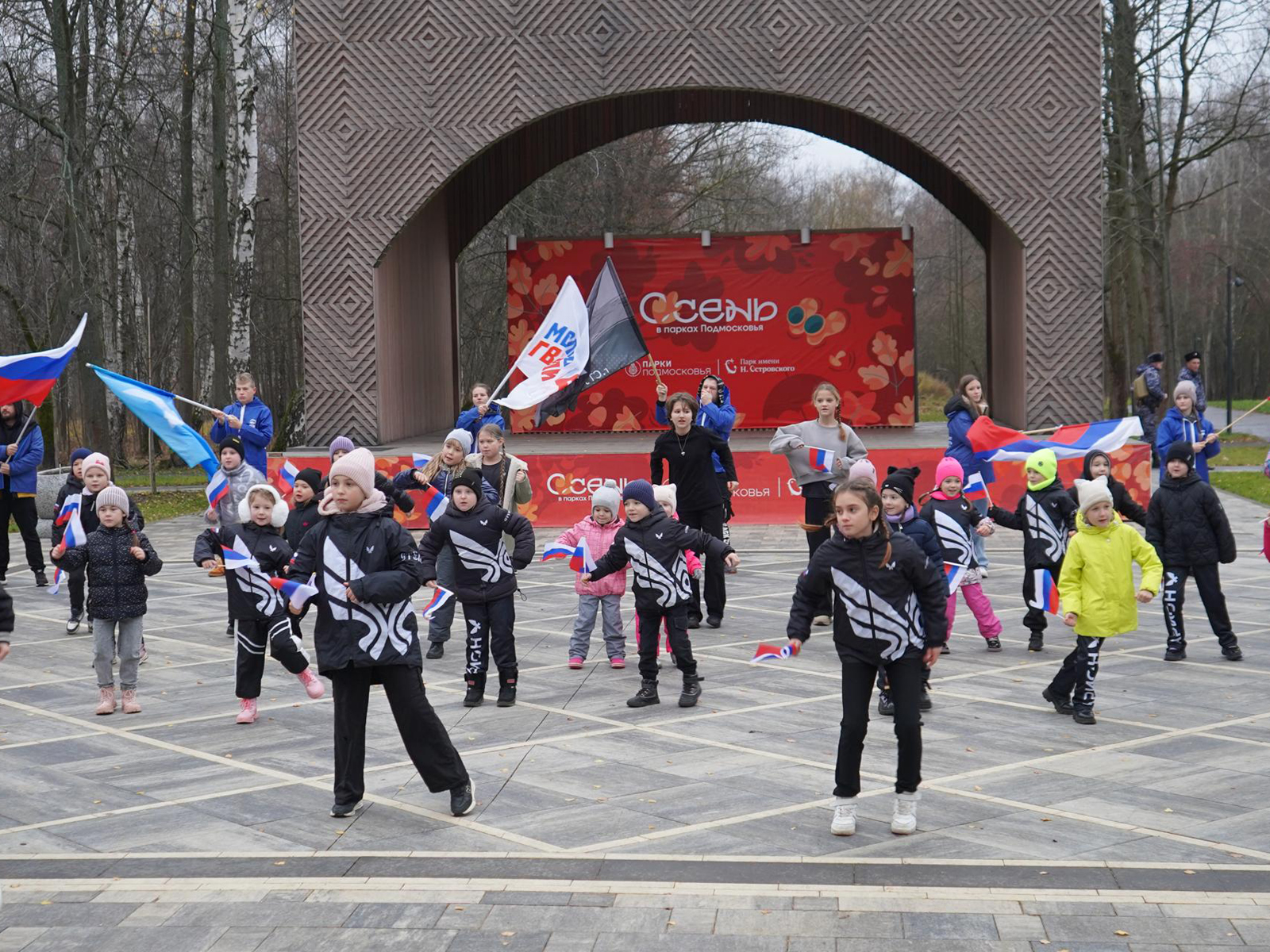 В День народного единства, 4 ноября, в парке города Ступино прошли праздничные мероприятия, несмотря на дождливую погоду. Празднование началось у главной сцены с торжественной патриотической акции, организованной воспитанниками центра общественного здоровья «Арион».