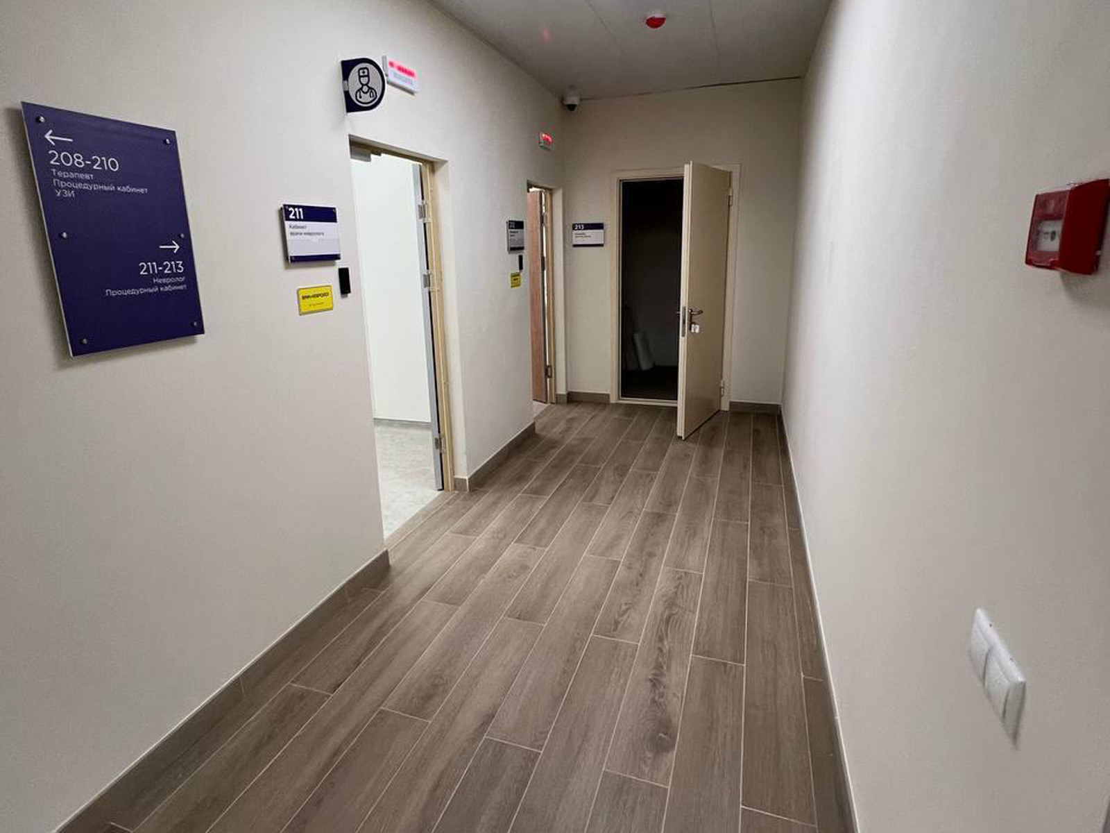 Внутри здания также произошла полная замена инфраструктуры. Рабочие обновили все инженерные коммуникации и установили новую сантехнику. Интерьер помещений теперь отвечает современным стандартам комфорта: пациентов встретят светлые кабинеты, новая удобная мебель и понятная система навигации, которая поможет легко ориентироваться в коридорах. Прилегающая к поликлинике территория также была благоустроена, чтобы ожидание приема и путь к врачу были максимально комфортными.
