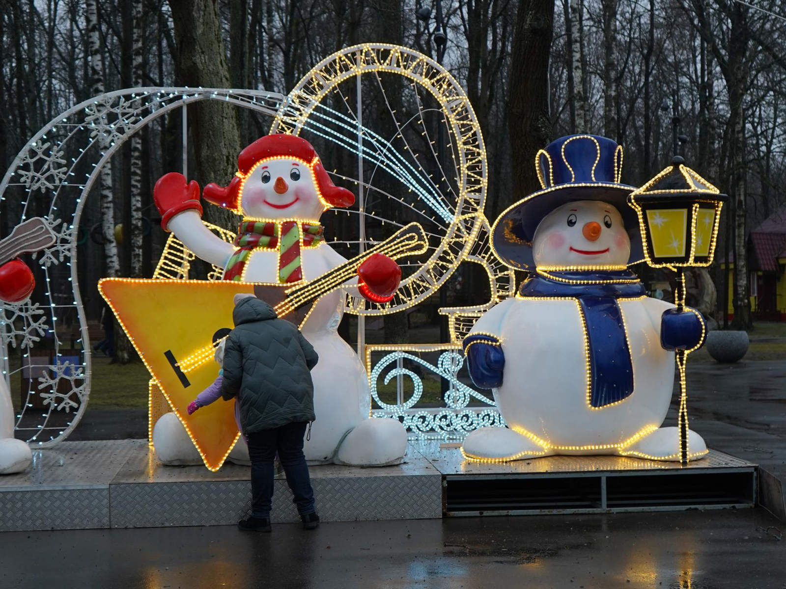 На территории зоны отдыха уже появились первые арт-объекты. На детской площадке, расположенной по соседству с резиденцией Деда Мороза, установили тематическую фотозону. Теперь там «играет» ансамбль из светящихся снеговиков с музыкальными инструментами. Не остался без внимания и каток: возле ледовой площадки заняли свои места фигуры главных зимних волшебников — Деда Мороза и Снегурочки.