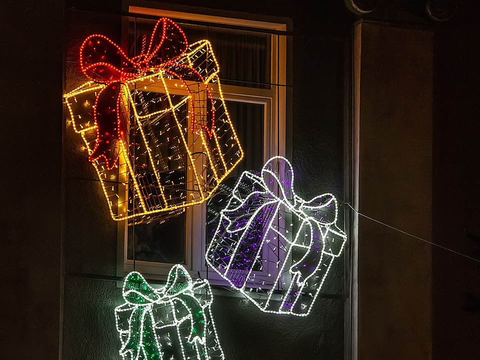 В сквере «Новый рынок» уже смонтирована фотозона в виде гигантского подарка, которую охраняют олени. Скоро на Бульваре Победы появится тоннель из трехметровых звезд, обещающий стать популярным местом для селфи.