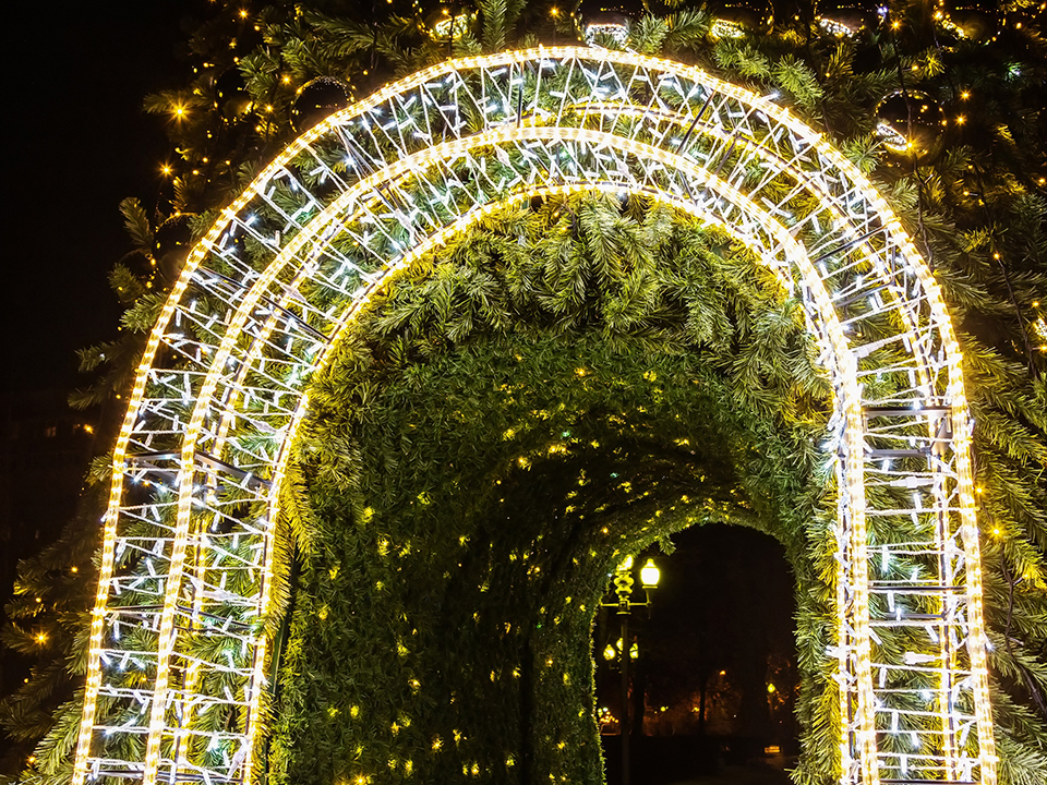 Традиционно на Бульваре Победы и Храмовой площади установят десятиметровые ели с порталами в Новый год, как прозвали жители световые арки в основании конструкции. Всего праздничная карта округа насчитывает двадцать две искусственные и семь живых елей.