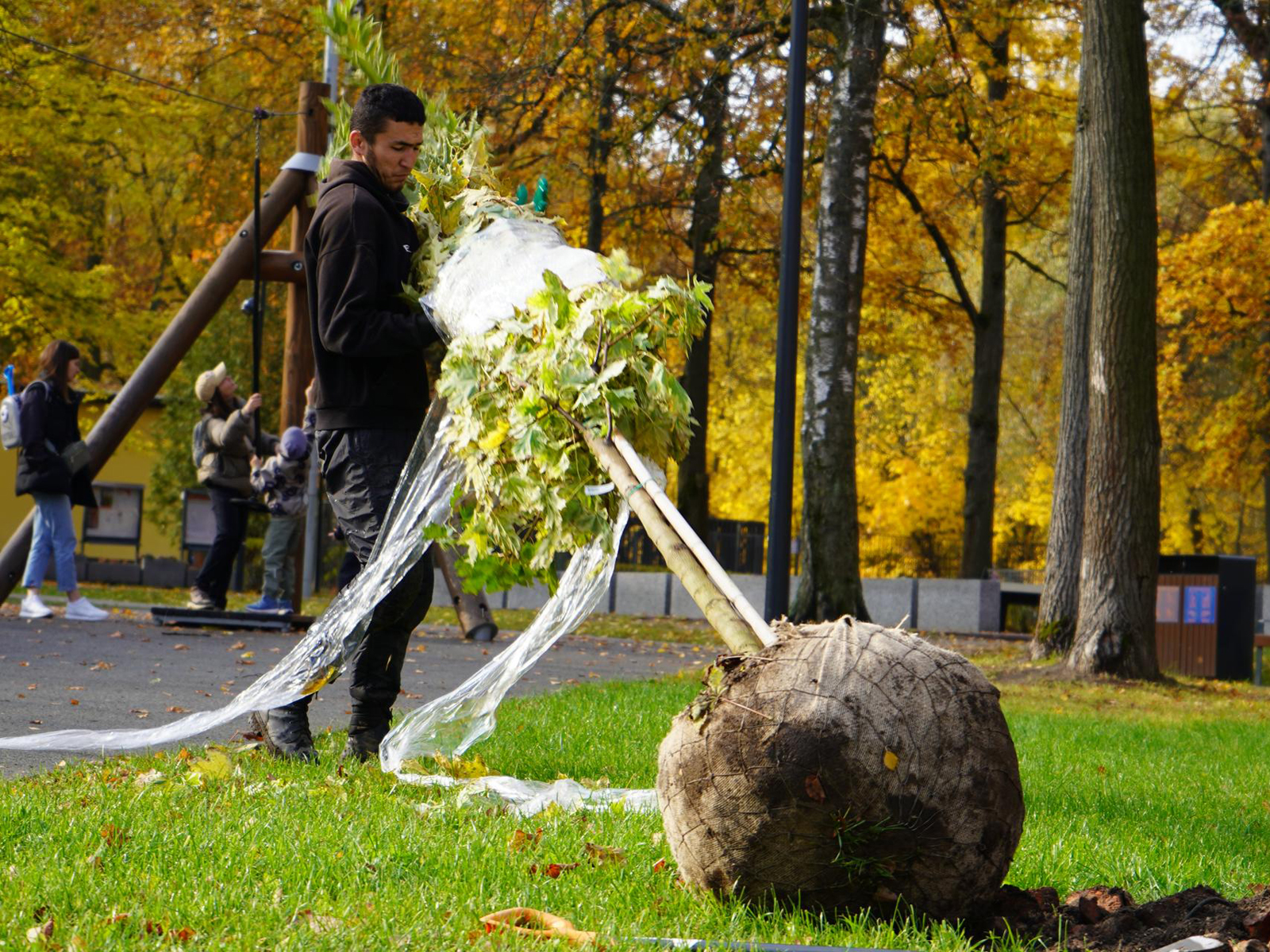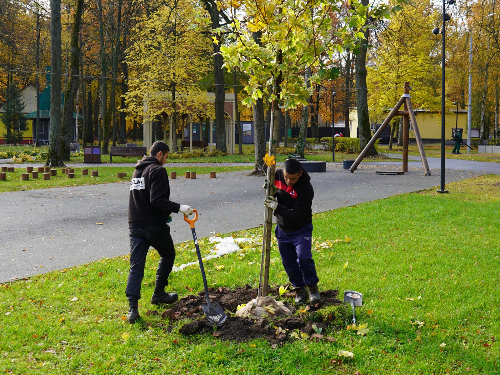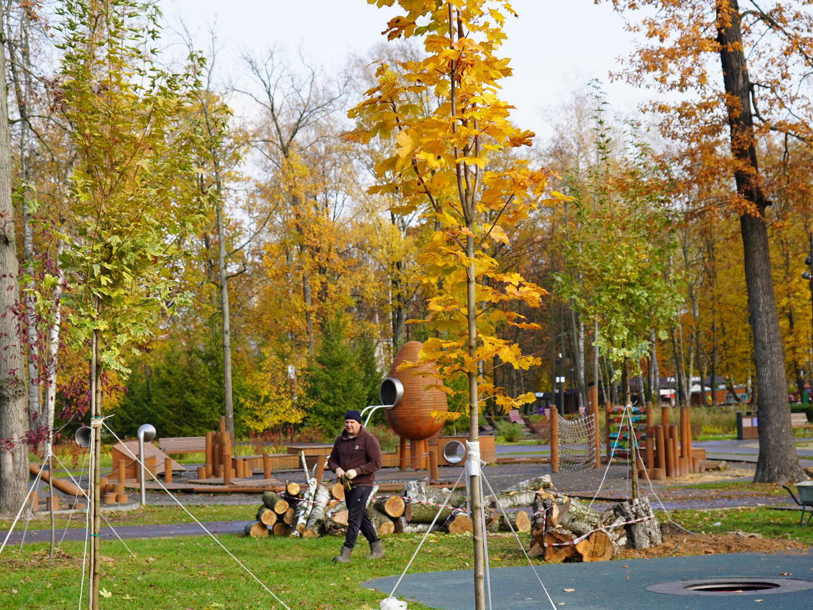 Эта осенняя посадка — продолжение большой работы, которая ведется в парке весь год. Ранее здесь уже появились 10 новых берез, 30 сосен и 12 кустов сирени.