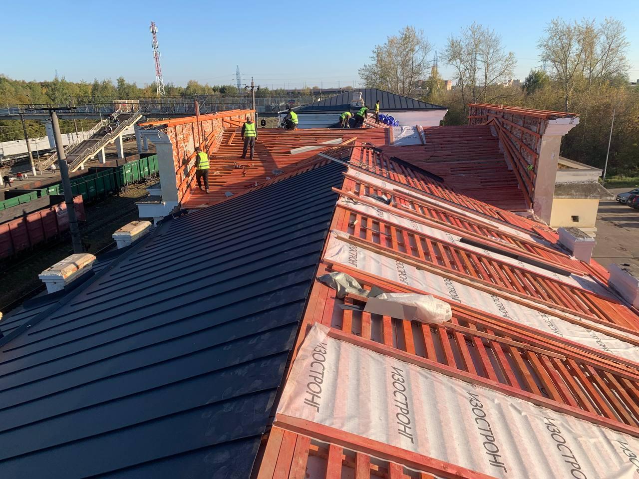«На железнодорожном вокзале в подмосковном Ступине начался ремонт кровли. Уже проведен демонтаж старых конструкций и возведена новая стропильная система. Сейчас идет установка обрешетки, монтаж гидро- и пароизоляции, укладка кровельного материала. Также будет смонтирована новая водосточная система», — рассказал начальник отдела по работе со СМИ службы корпоративных коммуникаций МЖД Алексей Васюков.