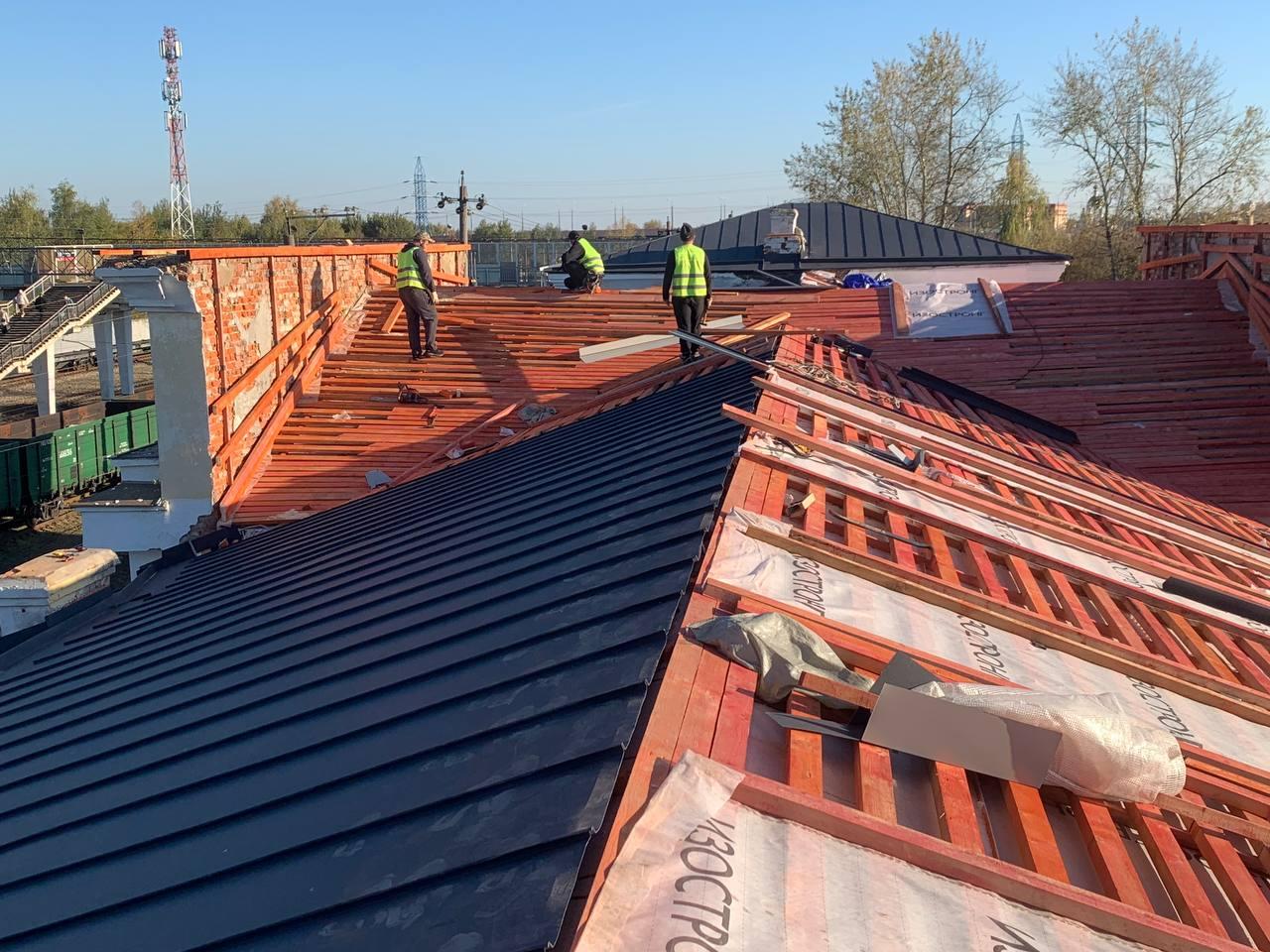 Капитальный ремонт кровли здания железнодорожного вокзала в Ступино выходит на финишную прямую. Строители уже покрыли новым профилированным листом более половины крыши и приступают к завершающим работам. Однако, как сообщили в Московской железной дороге, это только первый этап большого преображения вокзального комплекса.