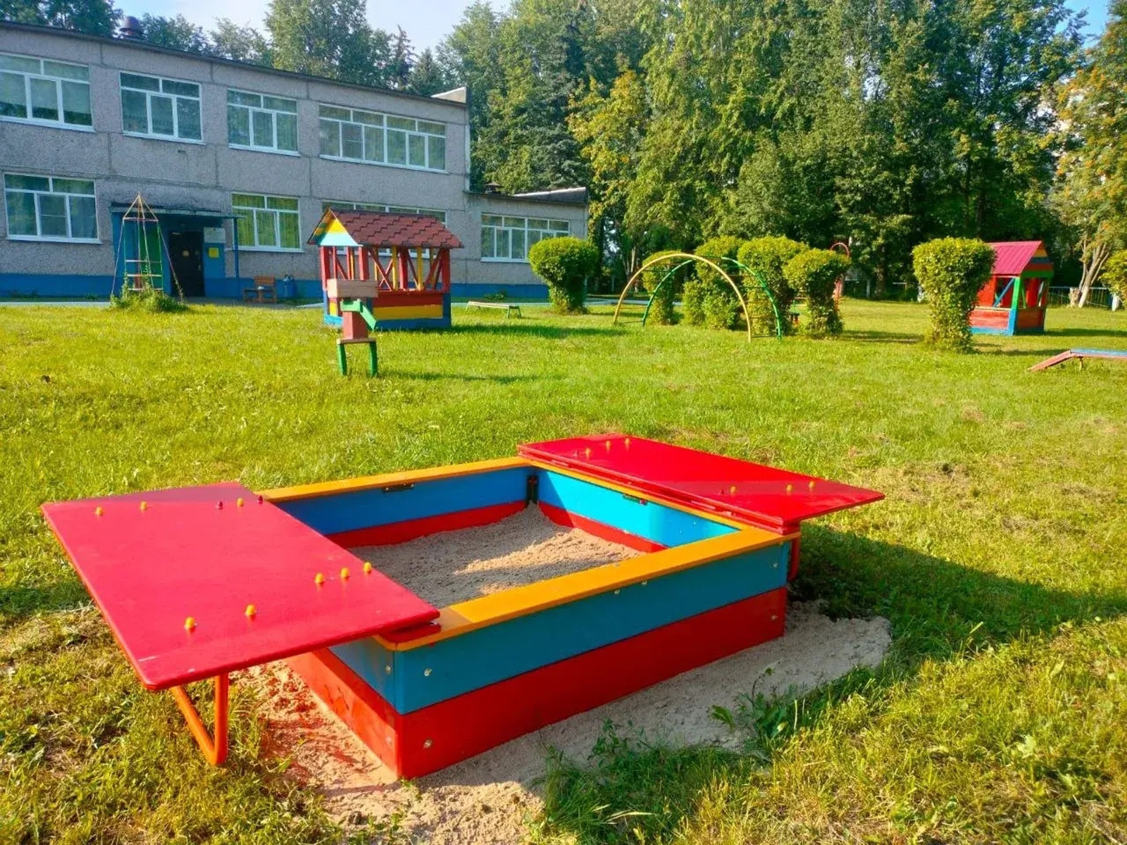 Кроме того, по всему периметру территории было полностью заменено старое ограждение. Для воспитанников на улице установили новую песочницу и оригинальную скамейку в виде гусеницы, а в рамках открытия «агросада» на территории появилась теплица.