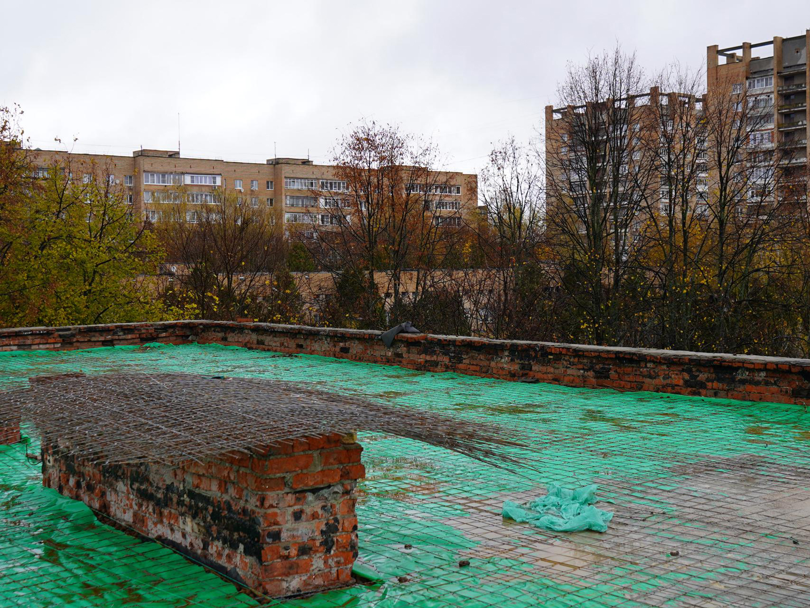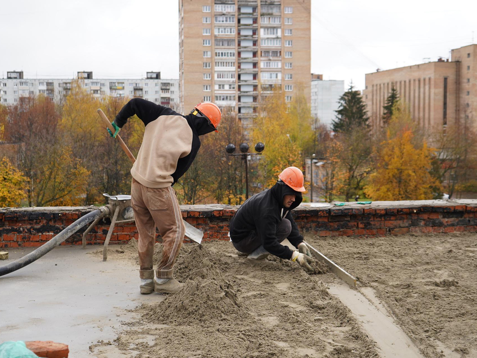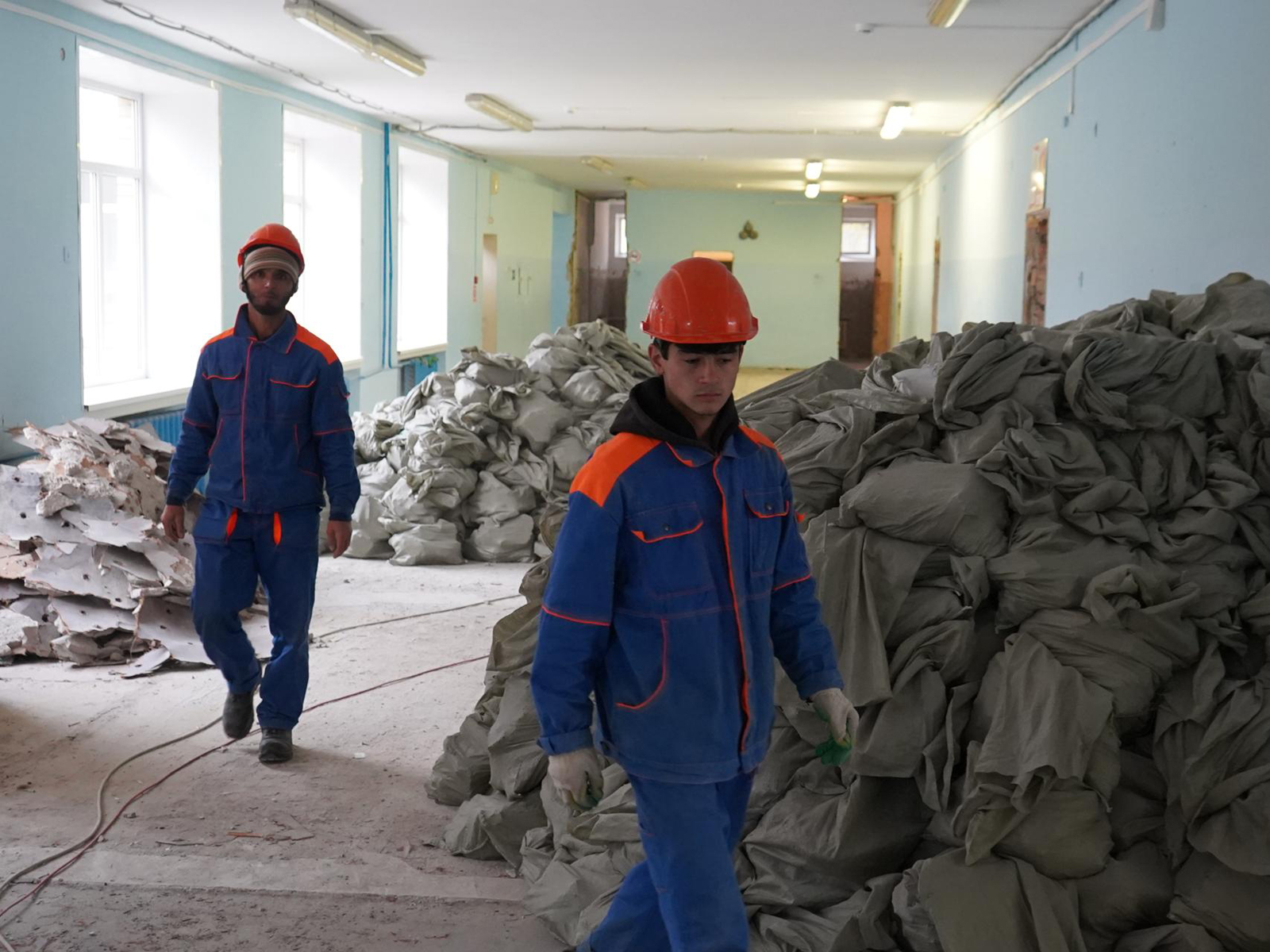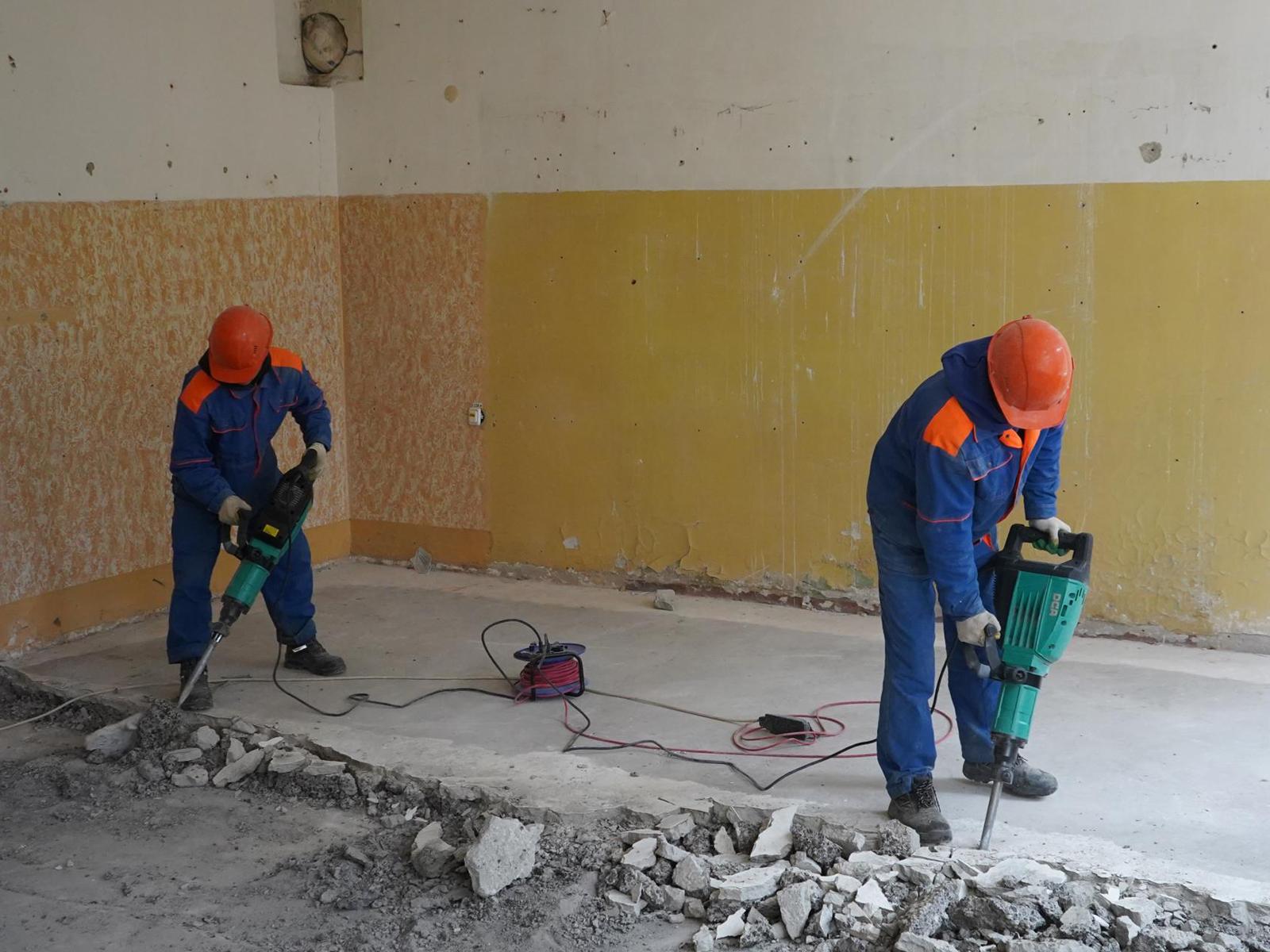 В настоящее время строители ведут демонтаж старых стяжек полов и одновременно меняют кровлю. По словам прораба компании Олега Камболова, это одна из самых трудоемких частей проекта, которая дает большой объем строительного мусора. На объекте ежедневно задействовано 50 рабочих.