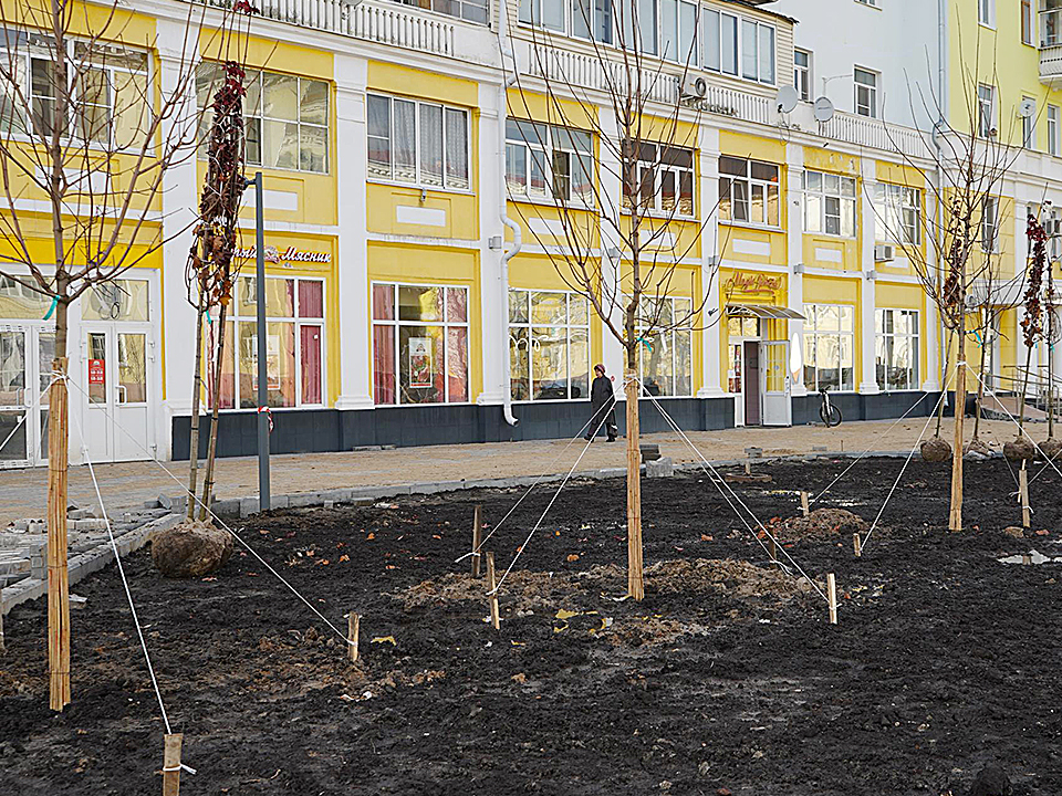 На обновляемом участке от бульвара Победы до площади Ленина уже началась высадка зеленых насаждений. Согласно проекту, здесь разместят свыше 100 кленов двух видов, 30 декоративных яблонь «Флорибунда» и 20 кустов сирени. Еще почти 200 гортензий дополнят ландшафт будущей весной.