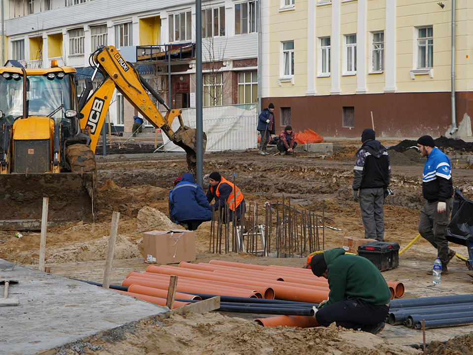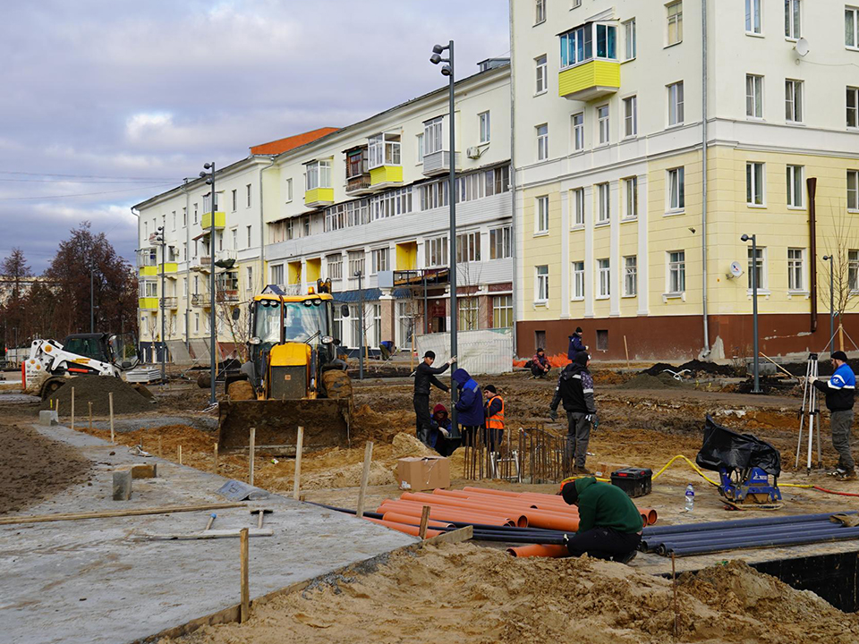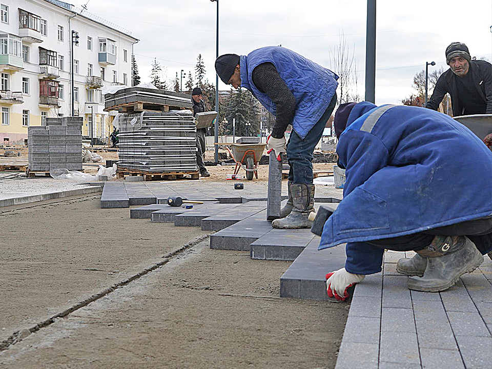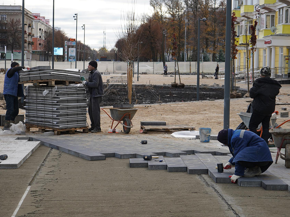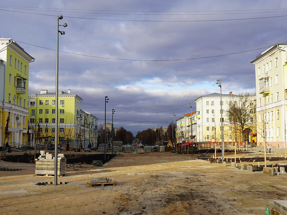 Параллельно с озеленением продолжаются работы по мощению тротуаров. Пешеходные проходы к магазинам и кафе уже открыты, смонтировано уличное освещение. В ближайшее время начнется установка малых архитектурных форм. Готовят к заливке чашу фонтана-спутника. Его запуск запланирован на следующий сезон.
