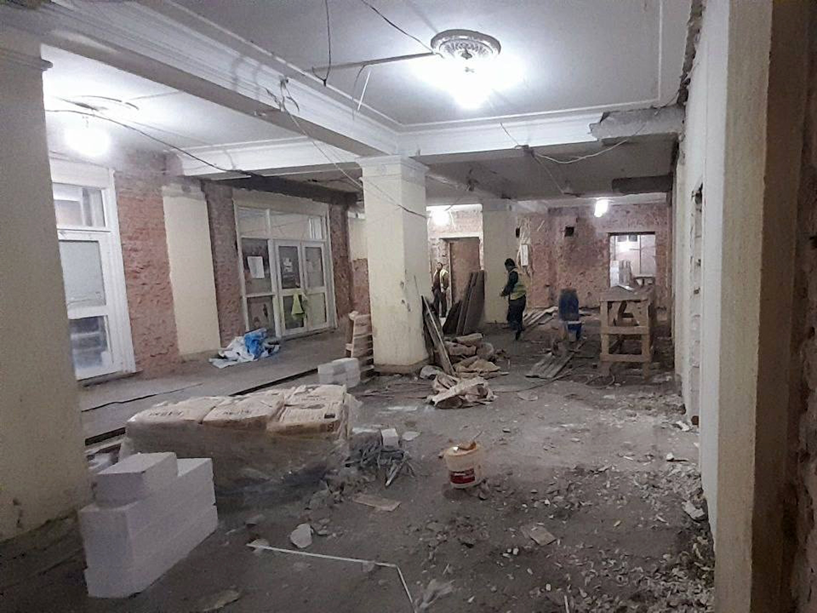 На объекте продолжается первый этап — демонтаж старых конструкций. Работы затрагивают как основное здание, так и всю прилегающую территорию, включая входную группу, ограждение, бывшие билетные кассы, фонтан и площадь. В главном здании полностью обновят фасад и все инженерные сети. Благодаря перепланировке внутренних помещений, в том числе раздевалок и кабинетов персонала, появятся новые востребованные пространства. К существующим универсальному и боксерскому залам добавятся современный тренажерный зал и еще одно дополнительное спортивное помещение.