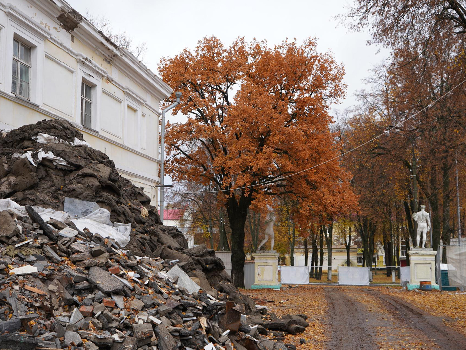В настоящее время на стадионе идут демонтажные работы: строители разбирают старые трибуны, внутреннюю отделку главного здания и готовят площадку к кардинальному преображению. Однако, как подчеркнул директор спортивной школы «Ока» Дмитрий Дубинин, главная особенность проекта — это бережное отношение к истории.