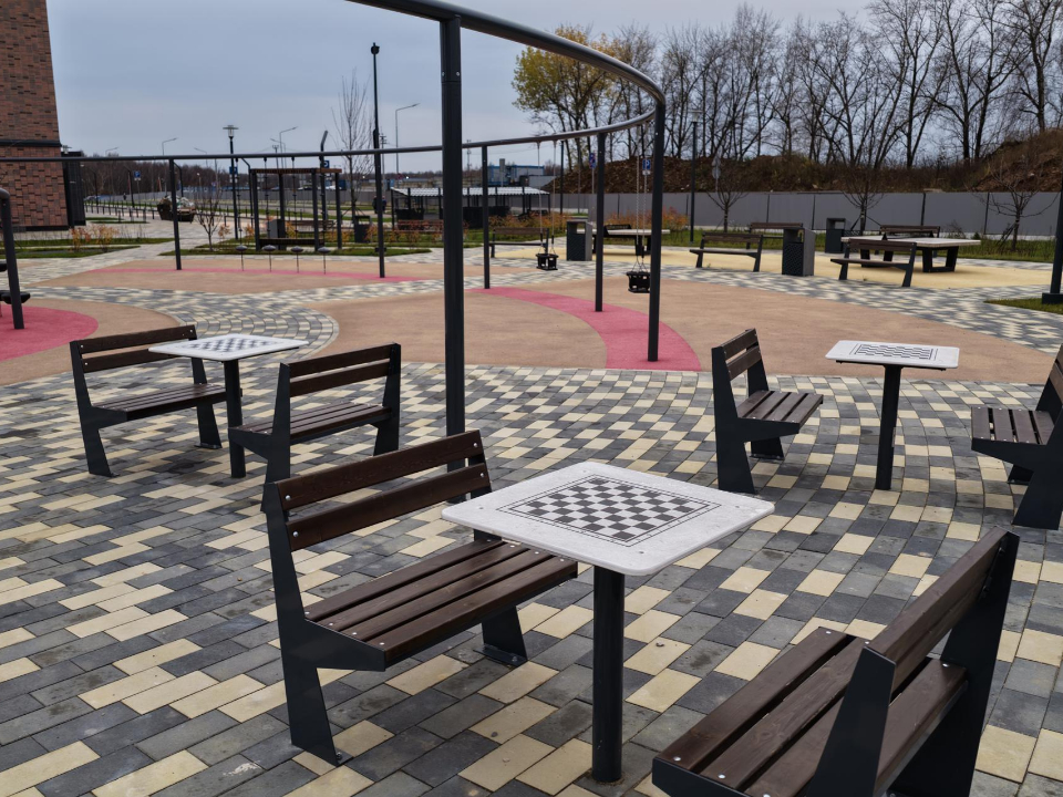 Также обустроена зона для пожилых людей и людей с ограниченными возможностями: здесь размещена радиусная пергола и длинная скамья длиной 27 метров, которая обеспечивает защиту от солнца и непогоды и служит местом для общения.