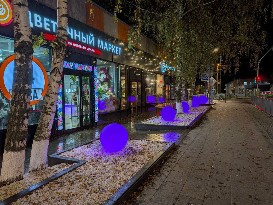 Светильники в виде больших шаров постоянно меняют цвет и создают ощущение, что ты попал в волшебную страну. Прохожие стали даже специально выбирать маршрут, чтобы лишний раз вечером пройтись здесь. Место моментально облюбовали для фотосессий.