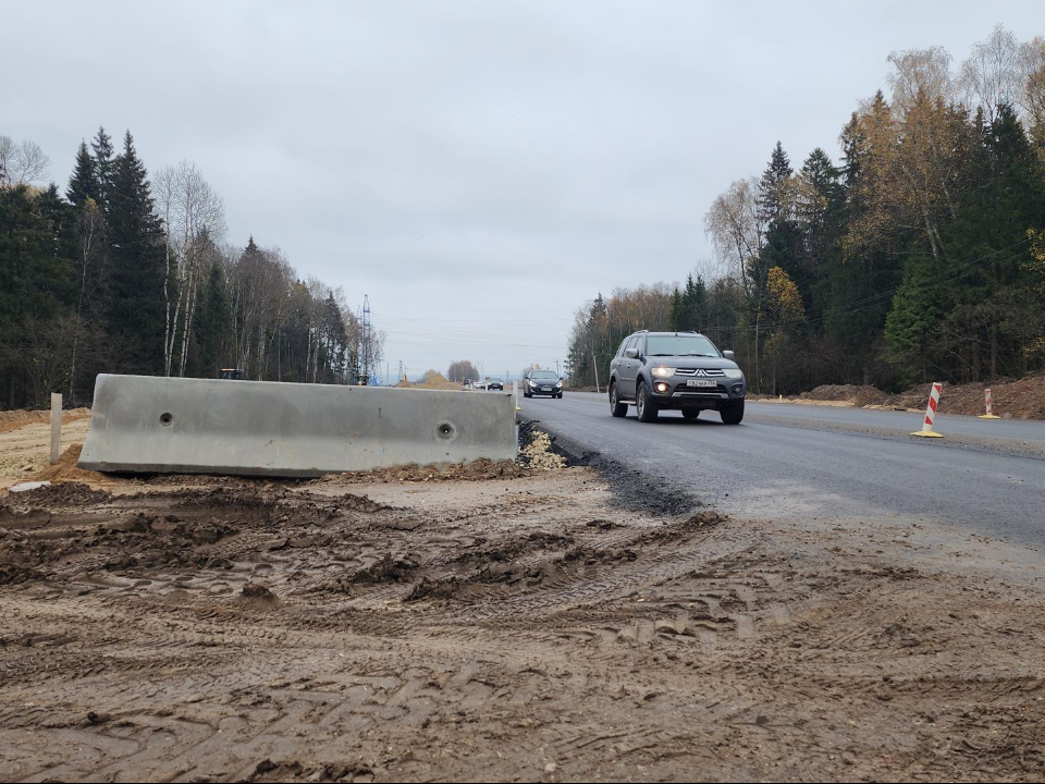 В настоящее время строители укрепляют новую обочину и делают водопропуски под проезжей частью. У поворотов к населенным пунктам и дачным поселкам будут переходно-скоростные полосы, здесь уже приступили к обустройству съездов.