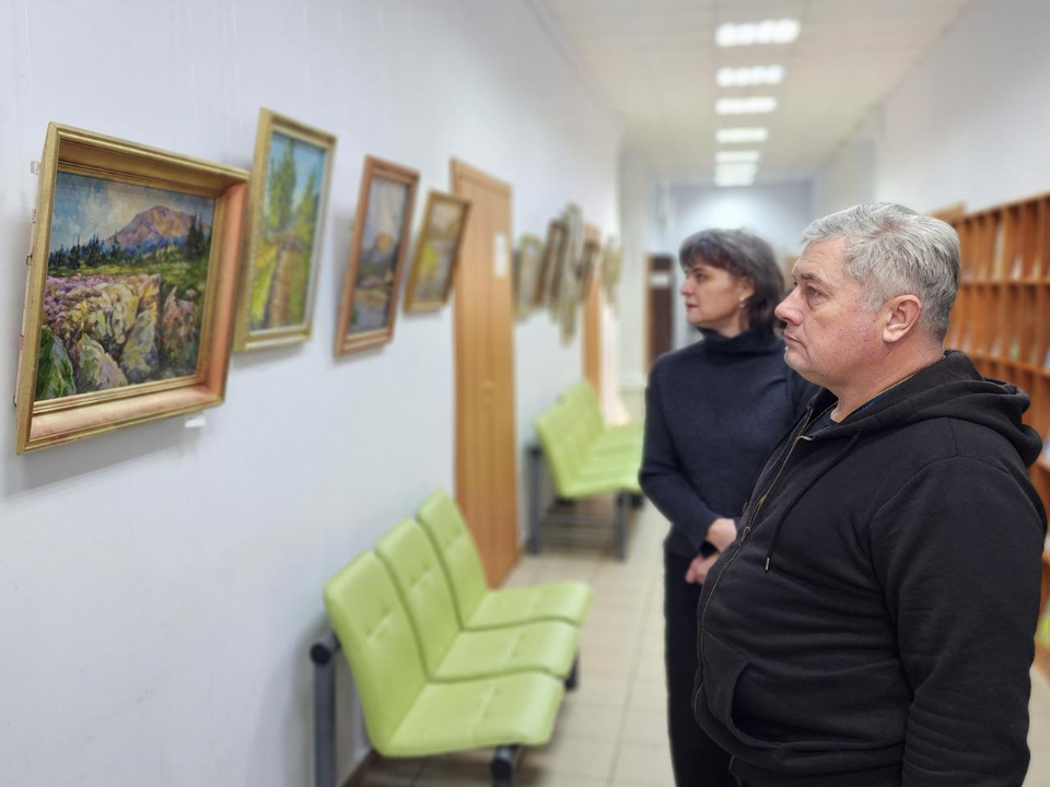 Стены библиотеки украсили 30 работ художника. На полотнах он изобразил любимые и родные места Южного Урала, есть здесь и волоколамские пейзажи. Посетители выставки смогли увидеть, как причудлива и прекрасна природа в таких далеких друг от друга уголках России, но как она при этом перекликается своими видами.