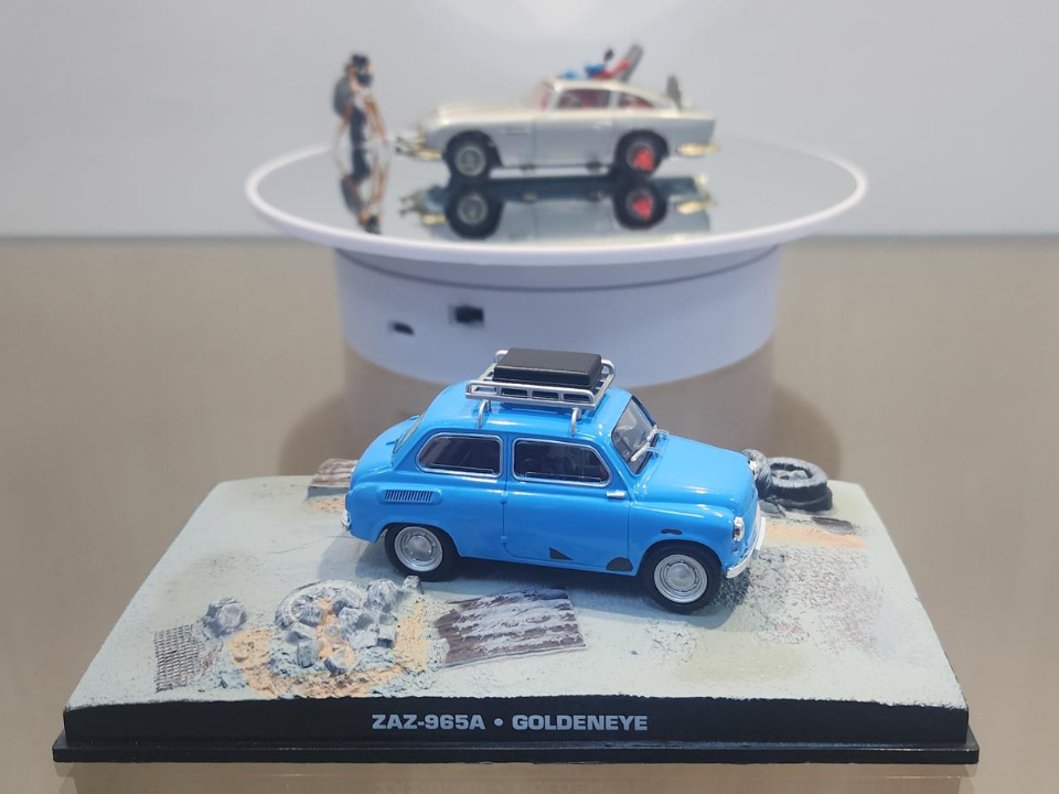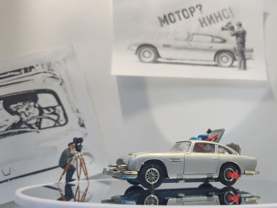 «Автомобилей-киногероев в моей коллекции было немного. Началось все со старенькой, из 60-х годов, функциональной модели Aston Martin DB5 с катапультой, пулеметами и прочими „шпионскими“ штучками. Потом коллекция пополнилась „Моргуновкой“ из фильма „Операция Ы“, „Москвичом“ из „Бриллиантовой руки“. Фильмы про английского агента — целый пласт автокультуры, в Бондиане снималось более сотни разных авто, в том числе ЗАЗ-965 „Запорожец“. Он и позволил объединить две разных темы в одной экспозиции», — рассказал коллекционер и автор выставки Макс Похлебкин.