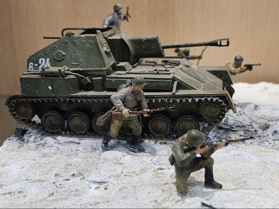 Дмитрий Савельев провел занимательную экскурсию по выставке, рассказав о технике, которой были оснащены противники, о важных сражениях Великой Отечественной. В ходе битвы за Москву произошел серьезный танковый бой под волоколамской деревней Игнатково, ему посвятили отдельную диораму, воссоздав в уменьшенном в 35 раз масштабе события 16–17 ноября 1941 года.