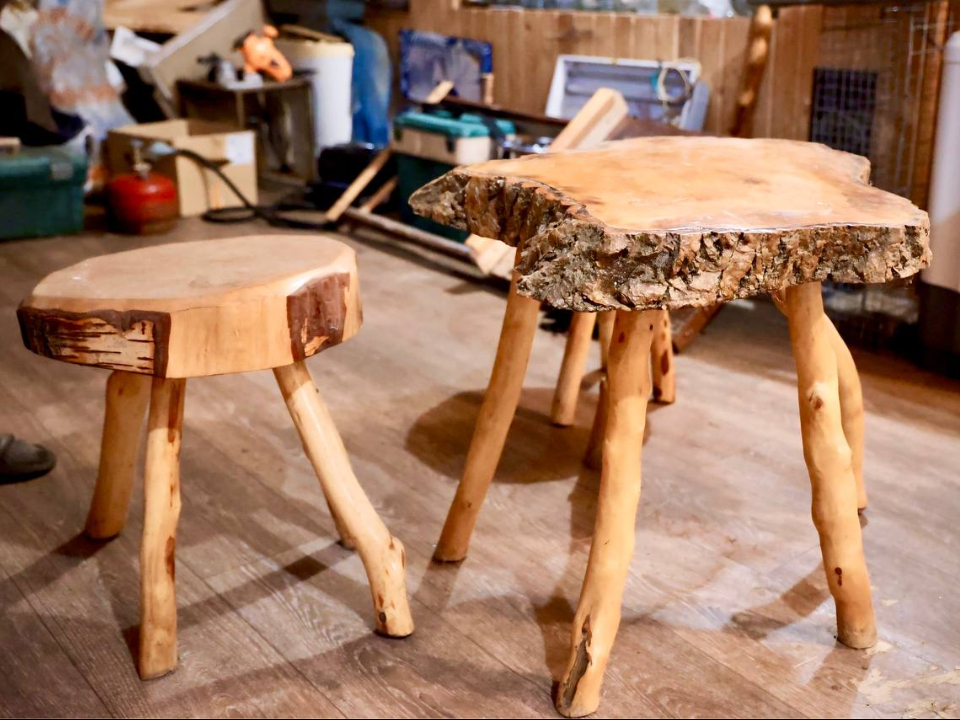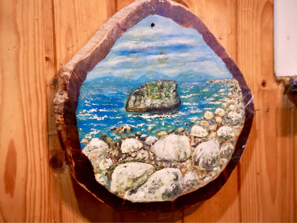 Его дом одновременно является и столярной мастерской, ведь картины он пишет не только на холсте, но и на спилах деревьев. Александр сам готовит под них основу: выпиливает, обтачивает, грунтует и пропитывает маслом. Даже межкомнатные двери в его доме истинные арт-объекты — вместо стекол в них вставлены живописные полотна, написанные хозяином. А в интерьере присутствует и самодельная мебель из дерева.