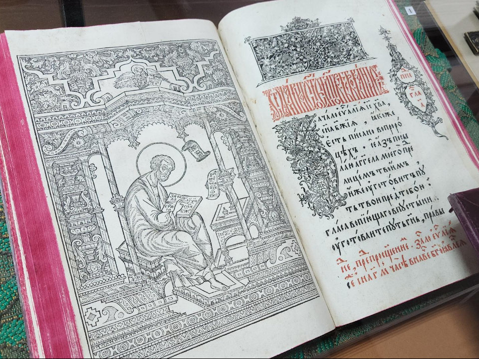 Первые книги писали от руки. Когда изобрели печать, в гравюрах присутствовали только два цвета — черный и красный. В обновленной же экспозиции музея появился Псалтирь XVII века, где гравюру после печати раскрасили вручную.