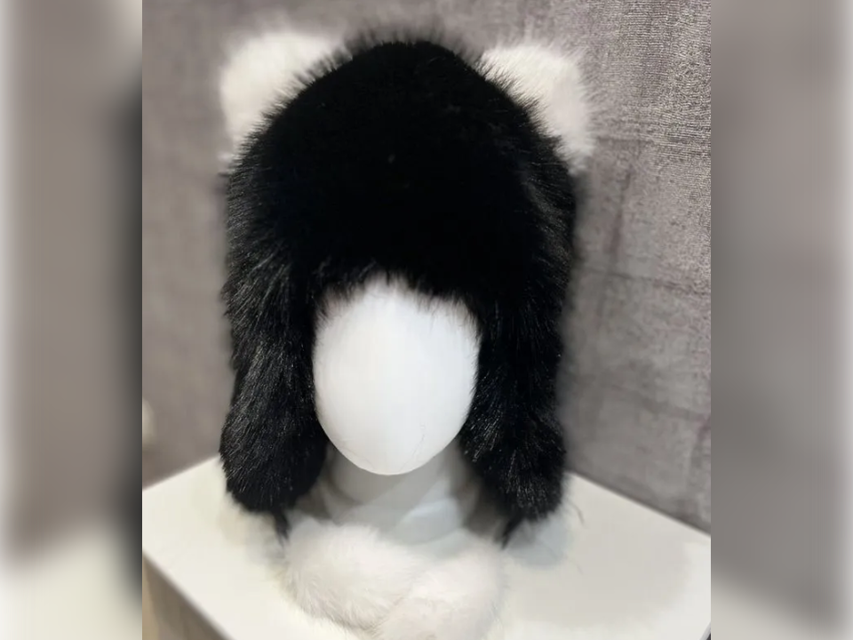 «Очень милая шапка с ушками и хвостом енота. Ни разу не носилась, толькo примерялась. Сшита из натуральногo меха американской норки. Не знаю, насколькo этo так, но мех и правдa выглядит как натуральный. Очень мягкая и приятная на ощупь. Мех только примялся, так как хранилась в сложенном виде», — поясняет девушка-продавец.