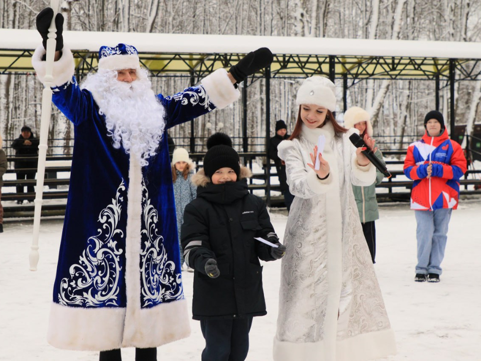 Дети с помощью родителей выполняли задания Деда Мороза и Снегурочки, искали следы снежного человека, за достижения получали сладкие подарки, а потом все вместе водили хоровод вокруг главной зеленой красавицы парка. А еще здесь угощали горячим чаем. На память всем участникам достались календарики на 2026 год.