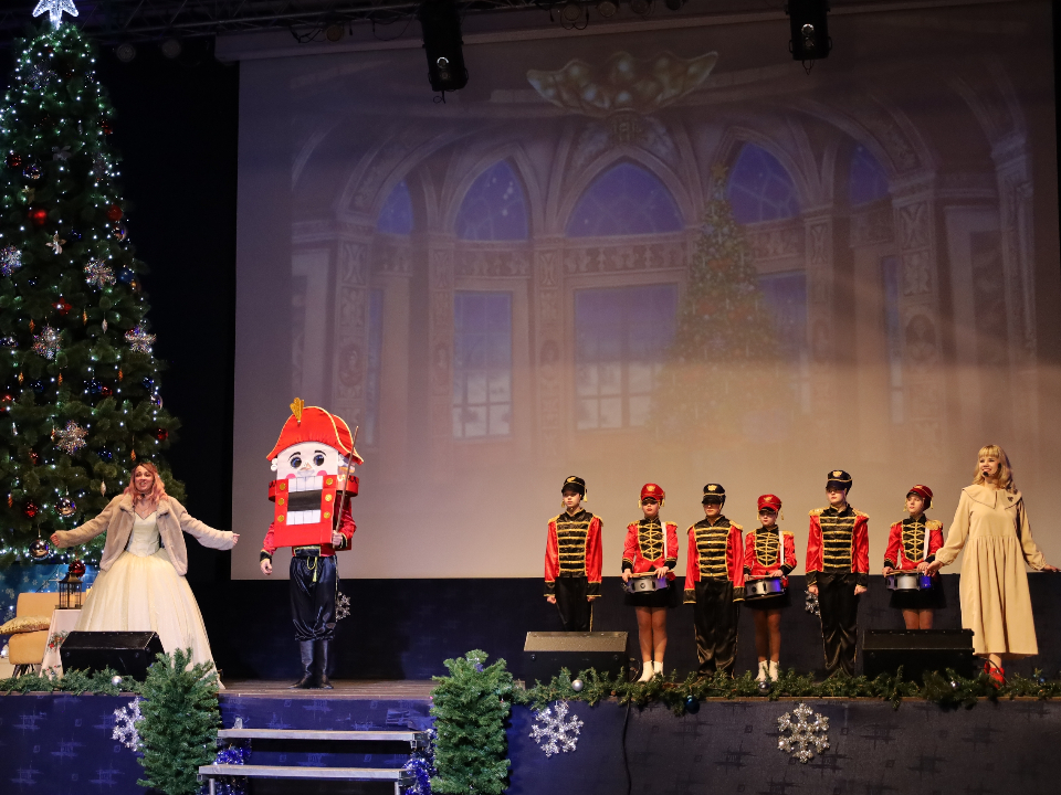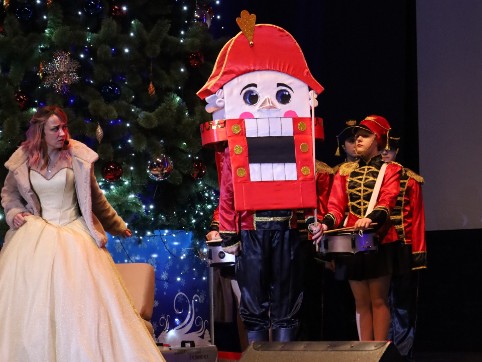 Для детей подготовили новогоднее театрализованное представление «Щелкунчик» (6+) — самую волшебную зимнюю историю. Перед ним ребят поздравила глава округа Наталья Козлова лично, пожелала им в наступающем новом году здоровья, успехов и исполнения всех самых заветных желаний.