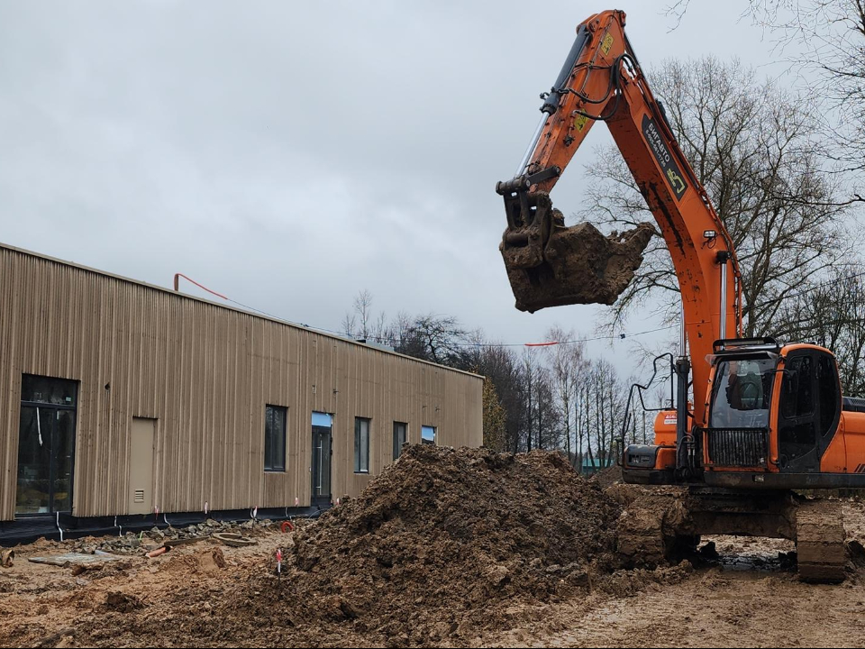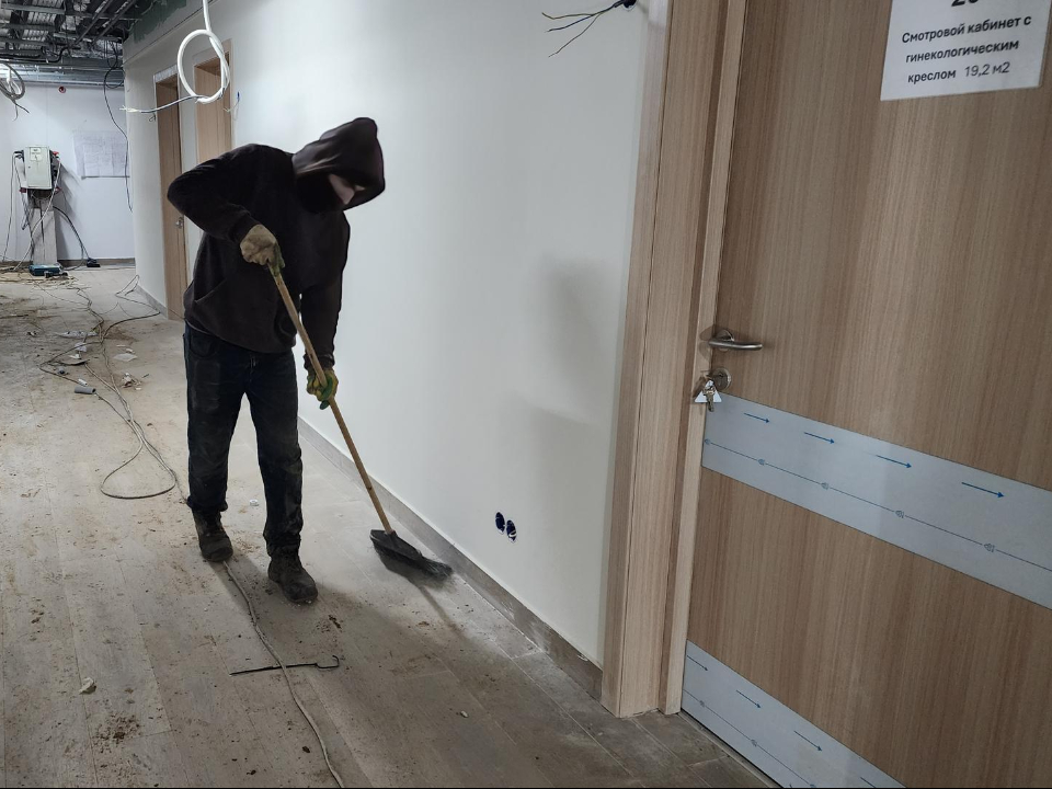 На общий же ход строительства сильный дождь особо не повлиял. Внутри ФАПа работы продолжились. В настоящее время специалисты проверяют систему отопления, прокладывают сети слаботочных систем, вывозят строительный мусор, чтобы приступить к чистовой отделке. На территории медучреждения строители прокладывают линии для наружного освещения и управления шлагбаумом, монтируют контур заземления.
