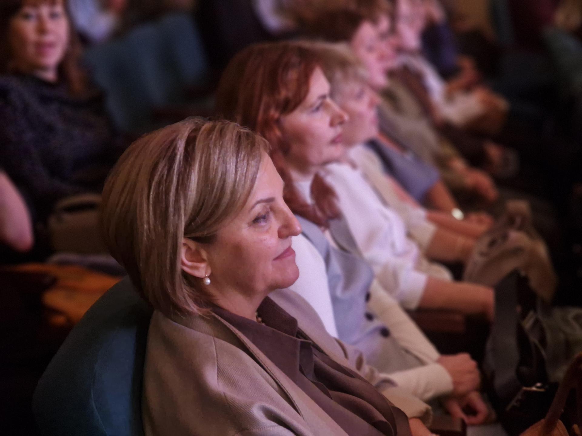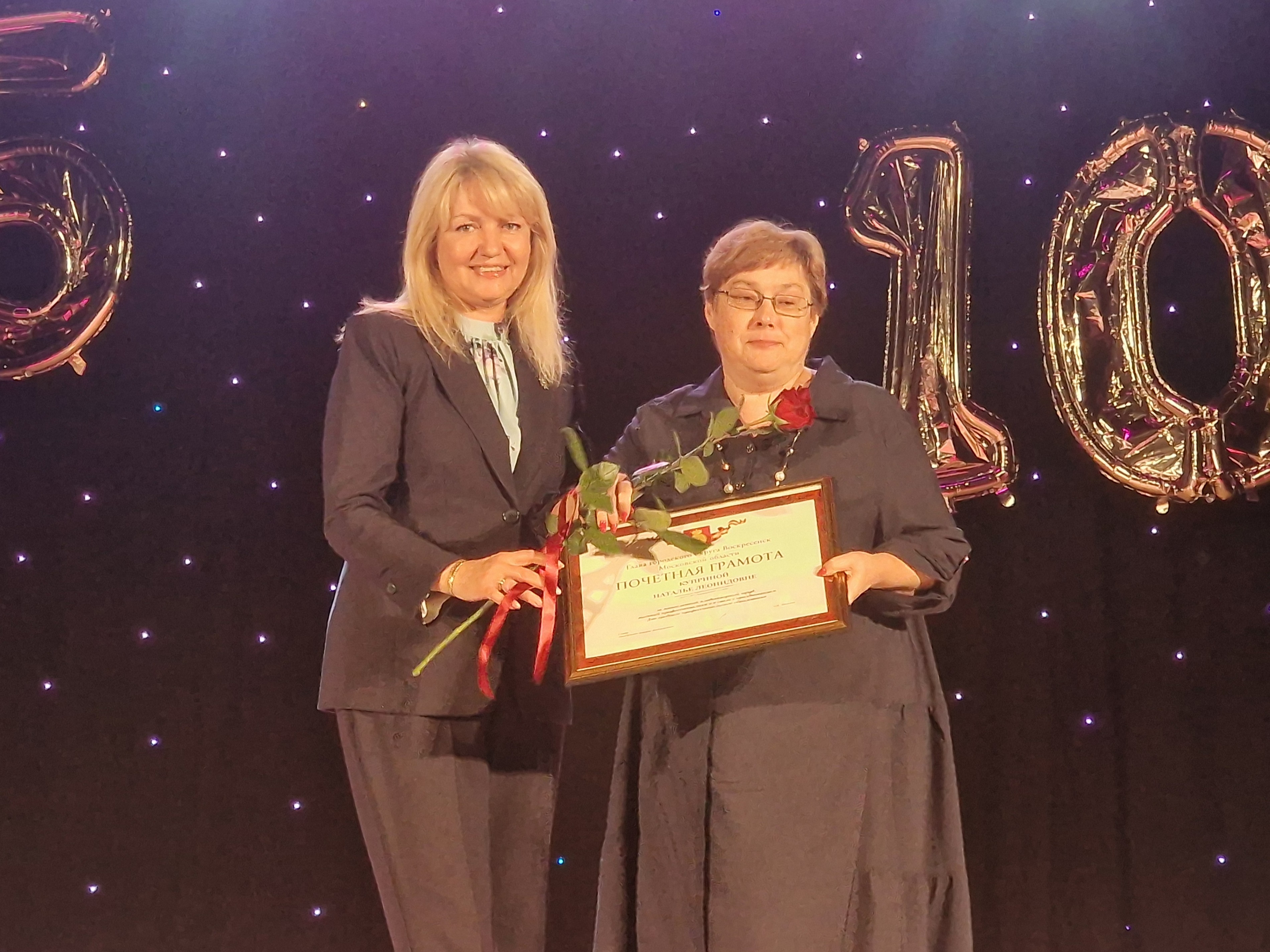 На сцене наградили педагогов колледжа за труд и вклад в подготовку квалифицированных кадров. Преподаватель Юлия Скударева была удостоена звания «Почетный работник сферы образования РФ».