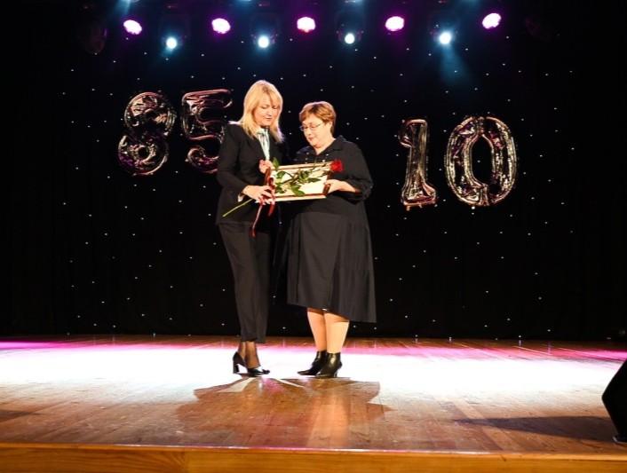На сцене торжественно наградили педагогов колледжа за труд и вклад в подготовку квалифицированных кадров. Почетные грамоты и благодарности были вручены от министерства образования Московской области, главы городского округа Воскресенск и от лица директора колледжа. Званием «Почетный работник сферы образования РФ» наградили преподавателю Юлию Скудареву.