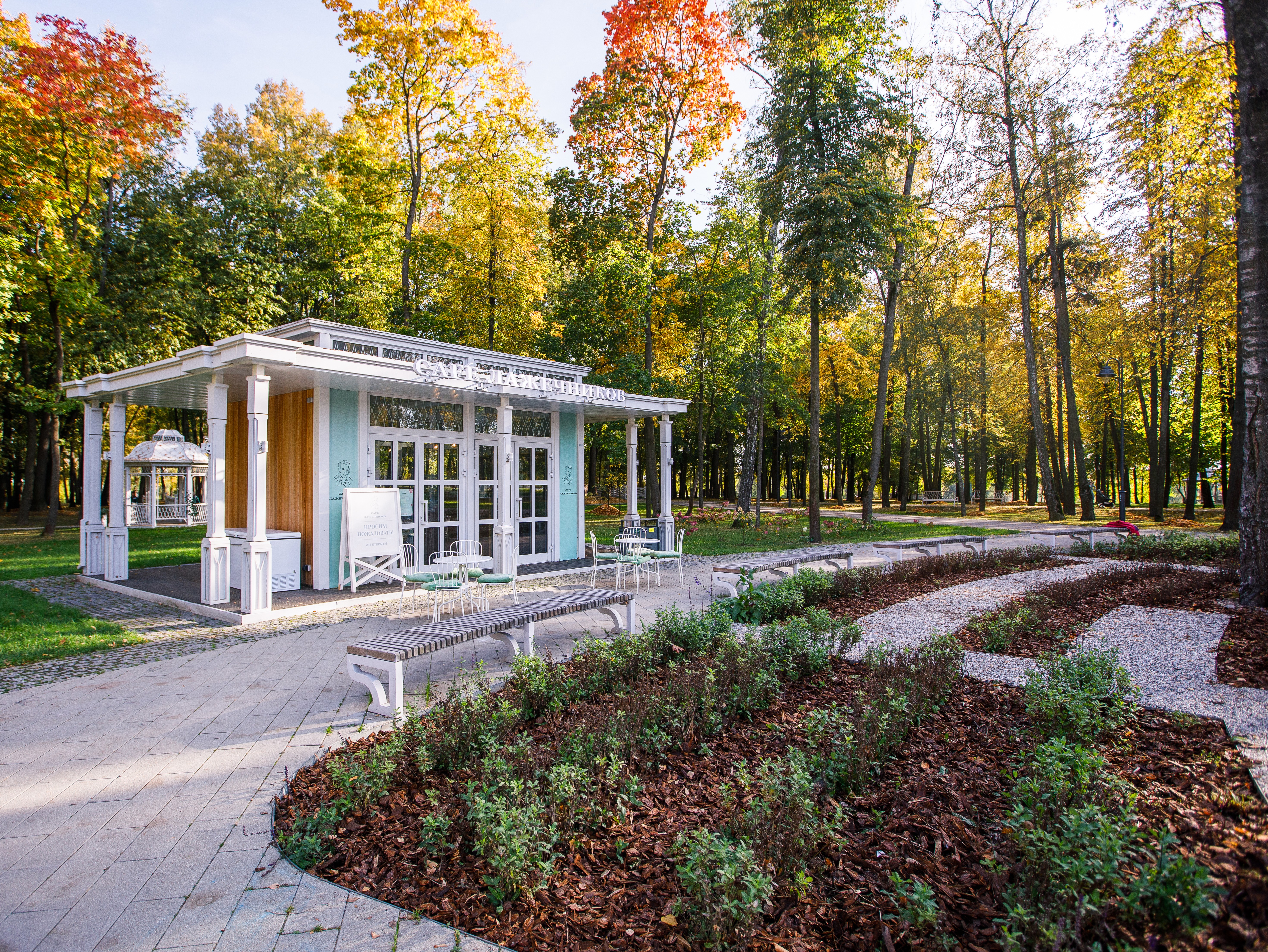 Универсальное место для фотосессий в любое время года. В октябре здесь классическая золотая осень выигрышно смотрится в сочетании с беседками, прудом, дорожками, и живописными уголками по всему парку.