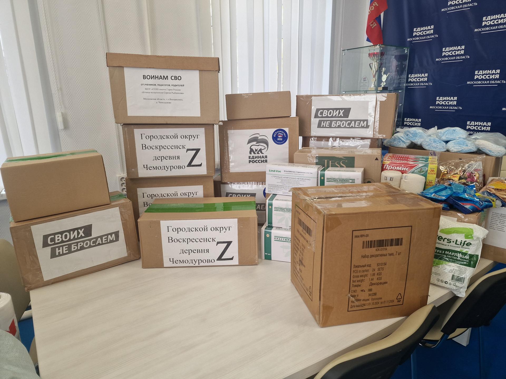 Депутаты, партийцы и активные жители деревни Чемодурово под Воскресенском собрали очередную партию гуманитарной помощи для бойцов специальной военной операции.
