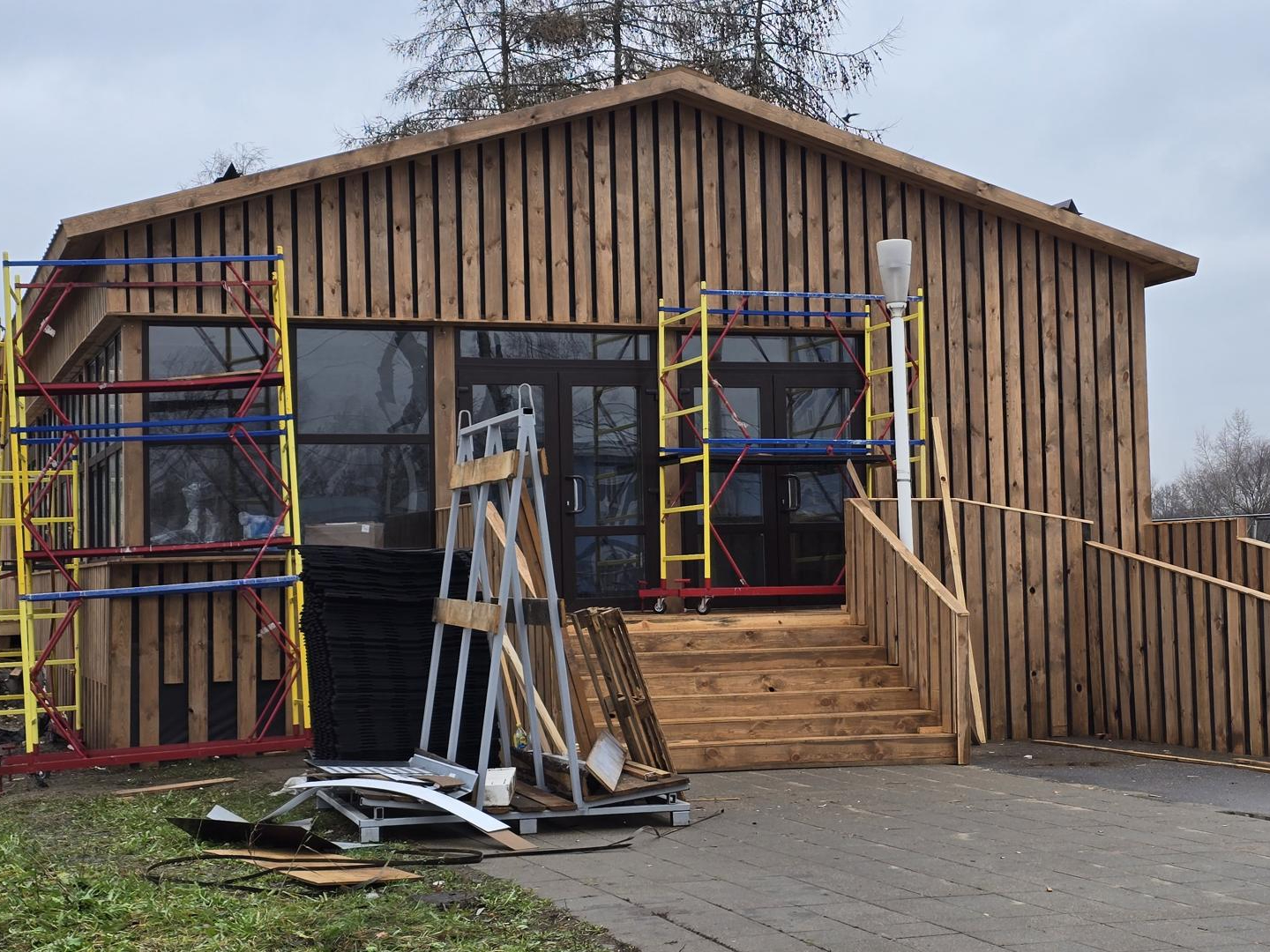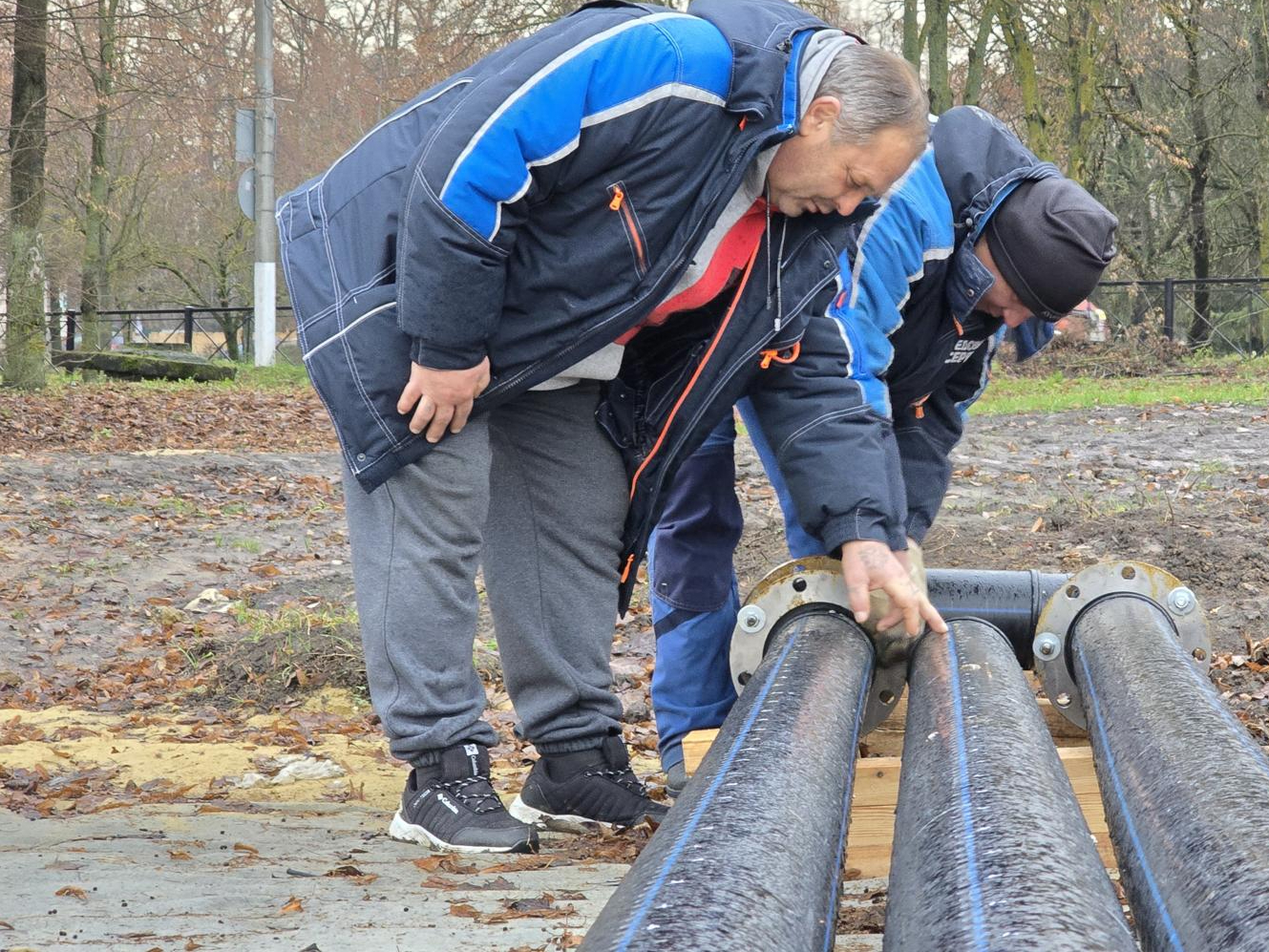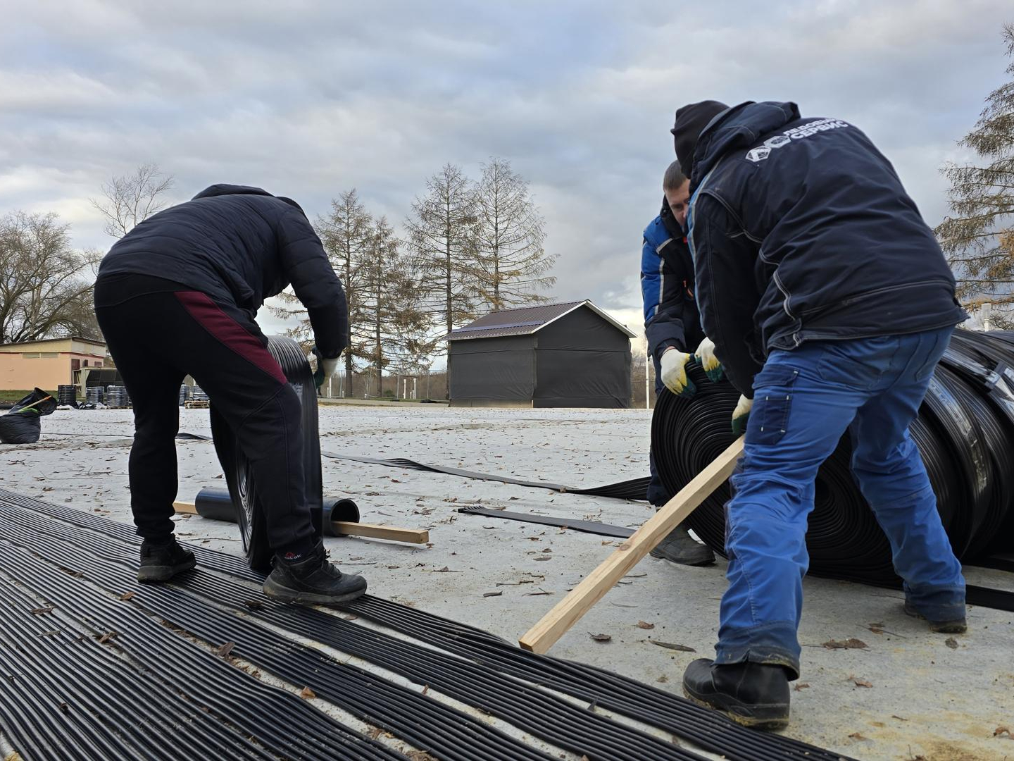 Специалисты раскатывают по площадке айс-маты — специальные модули с трубками, по которым будет циркулировать охлажденный этиленгликоль. Он поглощает тепло от поверхности и равномерно охлаждает основание, позволяя сформировать прочный лед даже при неустойчивой погоде. Кататься здесь можно будет до 15 марта 2026 года. Остается дождаться стабильных температур, чтобы начать заливку.