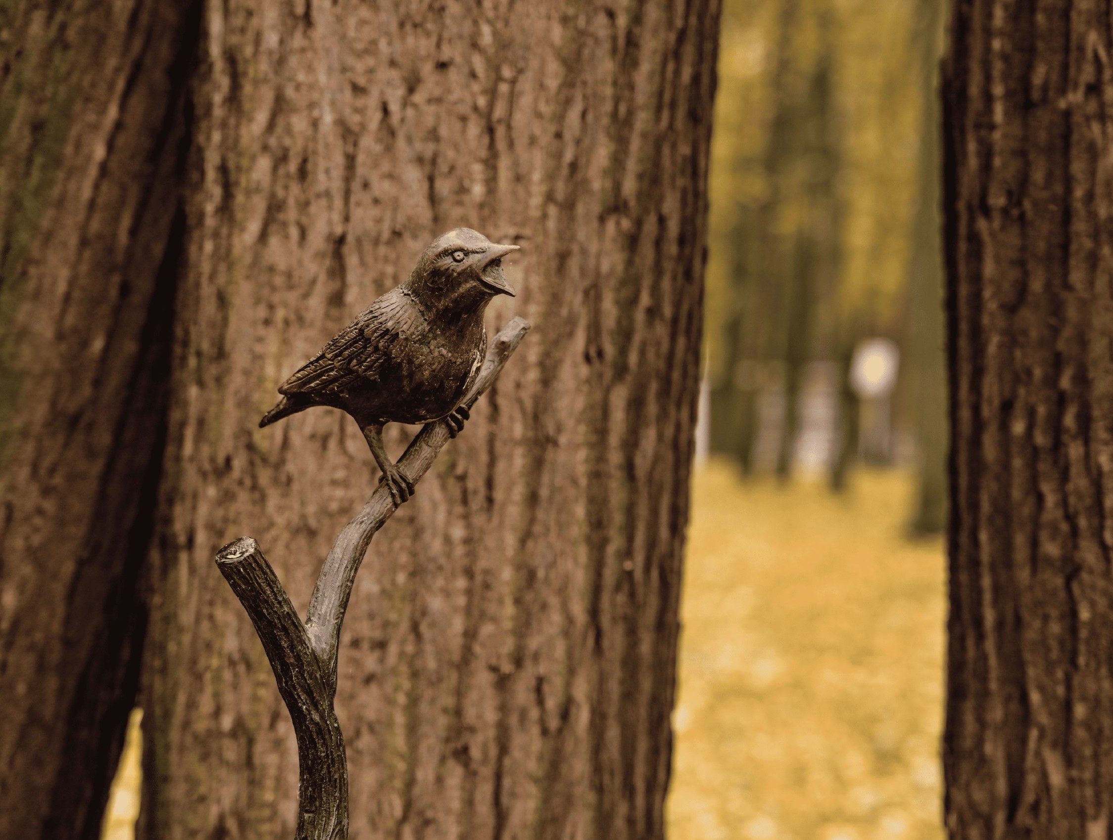 «Прямо среди деревьев и аллей живут удивительные бронзовые обитатели. Каждая птичка хранит свою маленькую тайну и готова поделиться с вами частичкой удачи. Мудрая Сова облюбовала место у шахматной площадки и книжных шкафов. Неспроста! Говорят, если аккуратно погладить ее бронзовое оперение, учеба дается легче, а в дневнике загораются новые пятерки», — объяснили воскресенцам.