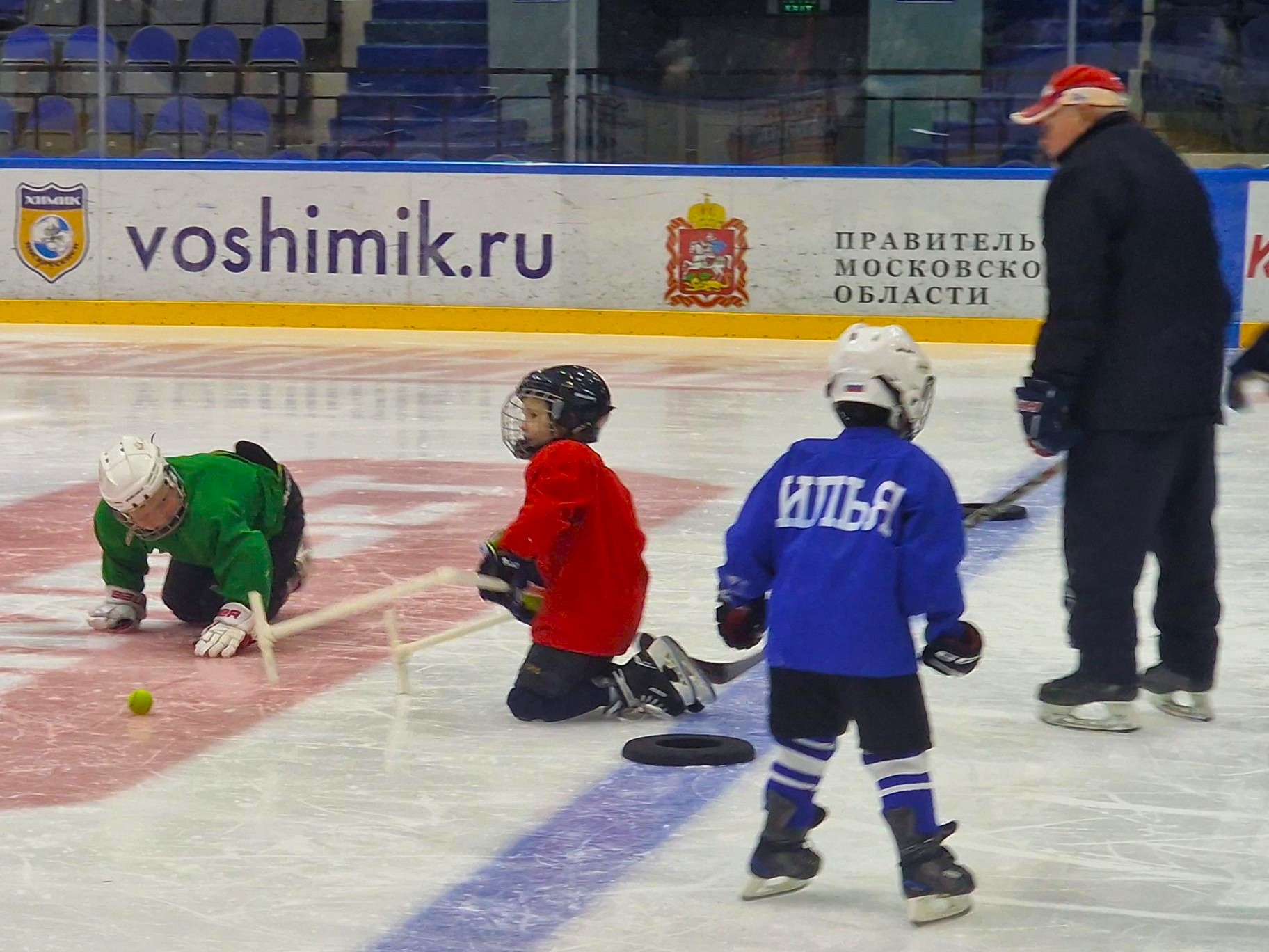 Главным событием для детей стал выход к хоккейной площадке. Здесь как раз шла тренировка их ровесников. Кто-то из них еще неуверенно скользит по льду, держась за пластиковую подставку, а кто-то уже щеголяет в именной хоккейной форме.
