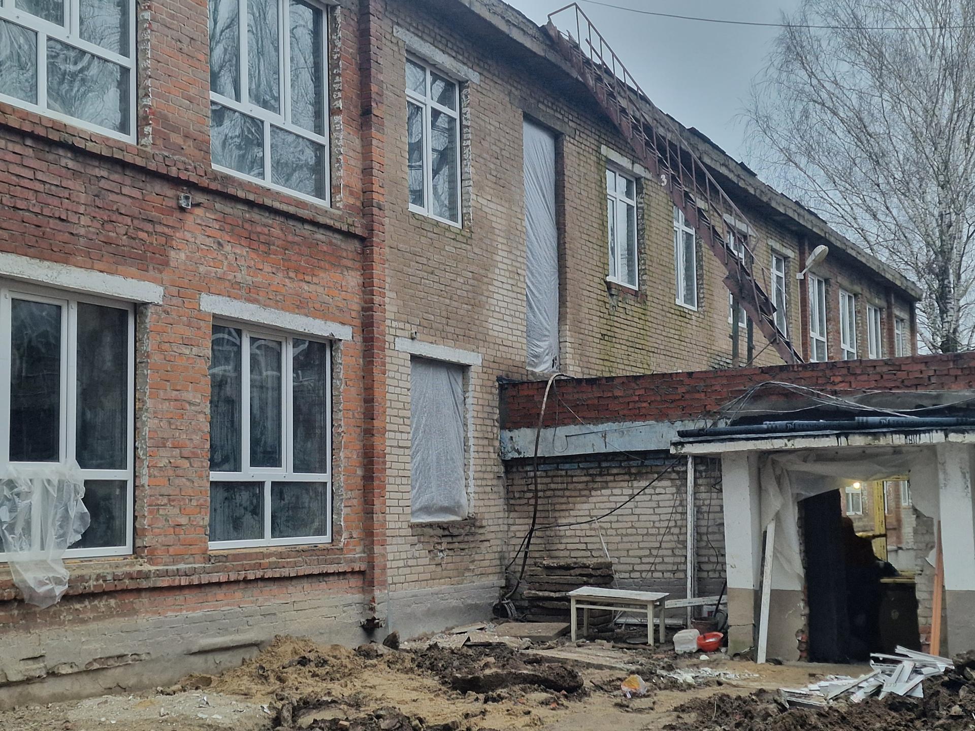 Специалисты уложили кирпичные перегородки и оштукатурили стены внутри, установили новые окна и завершили работы на крыше. Сейчас рабочие начали заливать выравнивающую стяжку полов и монтировать контур заземления. В ближайшее время выполнят и отделку фасада — для этого скоро начнут собирать строительные леса.