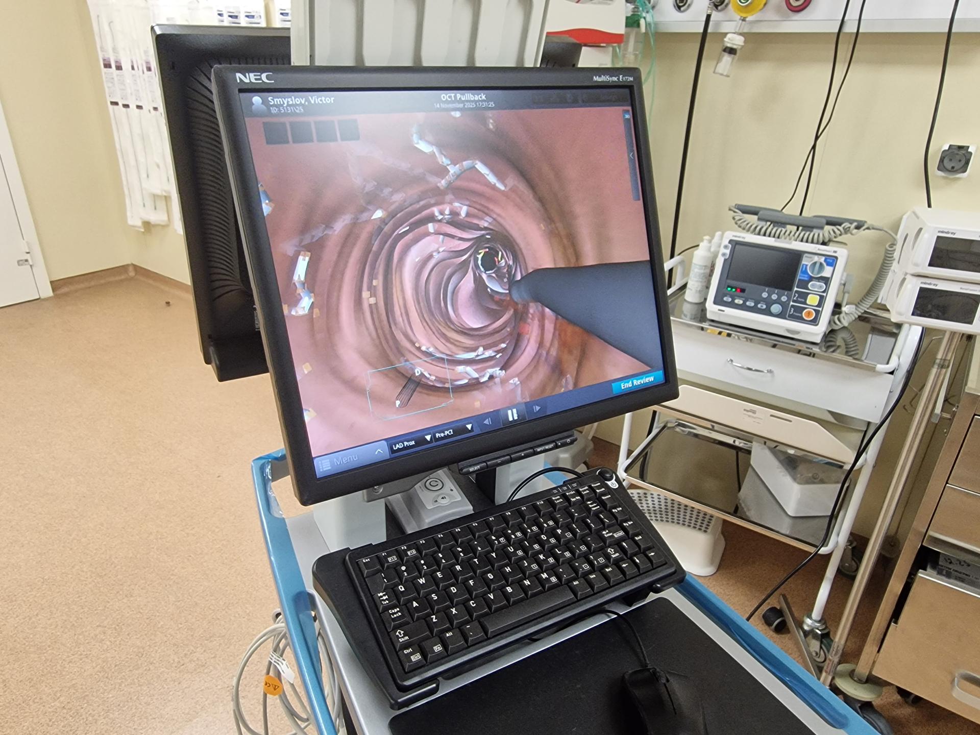 В Воскресенской больнице начала работу уникальная система сверхточной внутрисосудистой визуализации — оптическая когерентная томография. Это оборудование позволяет кардиохирургам буквально заглянуть внутрь сосуда и провести ювелирное вмешательство.