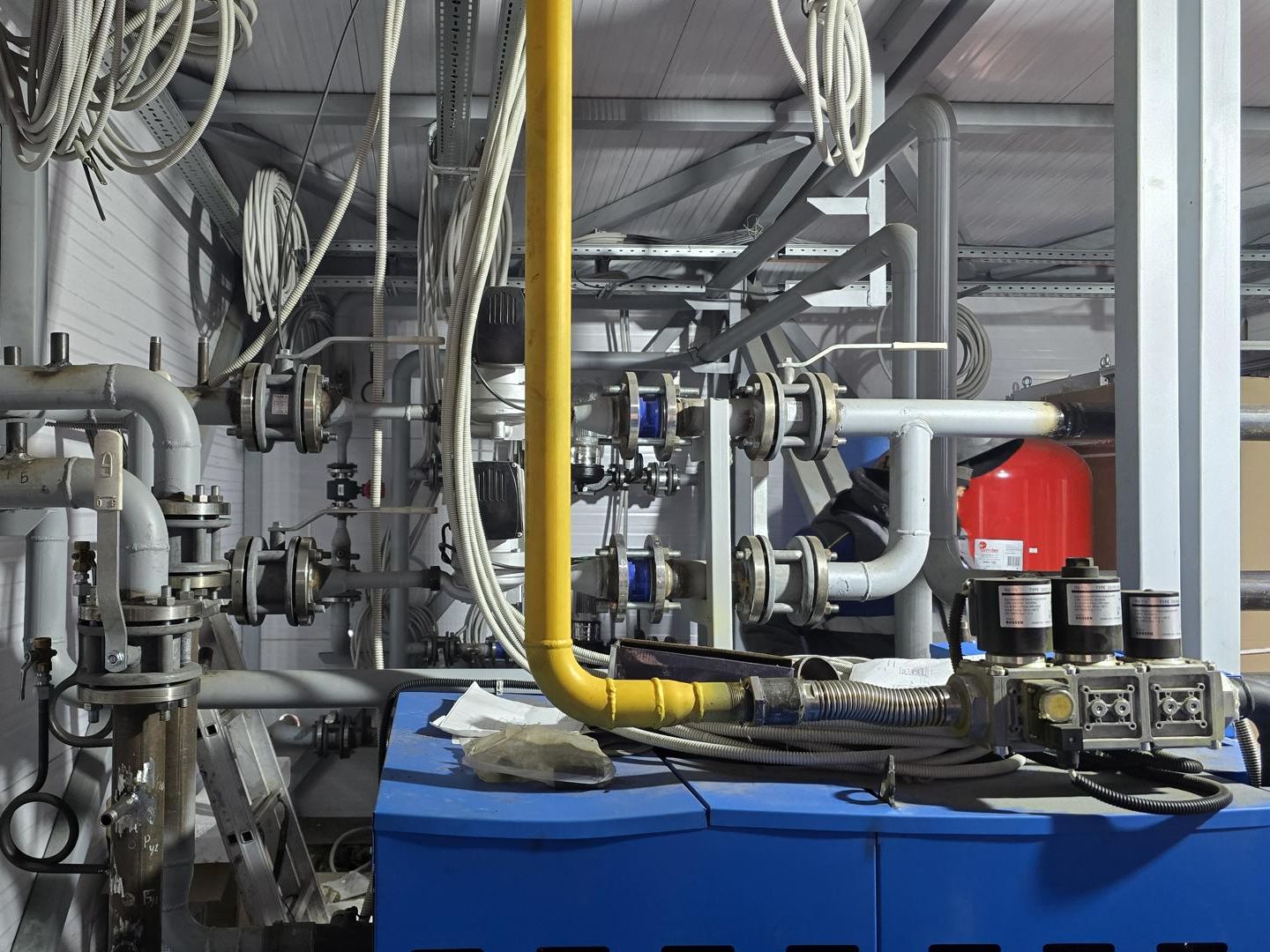 Специалисты уже установили фундамент и основное оборудование — два газовых котла общей мощностью 0,6 МВт. Система сможет работать без постоянного присутствия операторов — управляется дистанционно. Сейчас рабочие монтируют трубопроводы и внутренние сети. Окончание строительства запланировано на конец 2025 года.