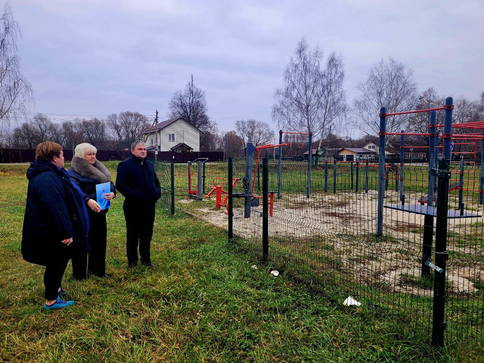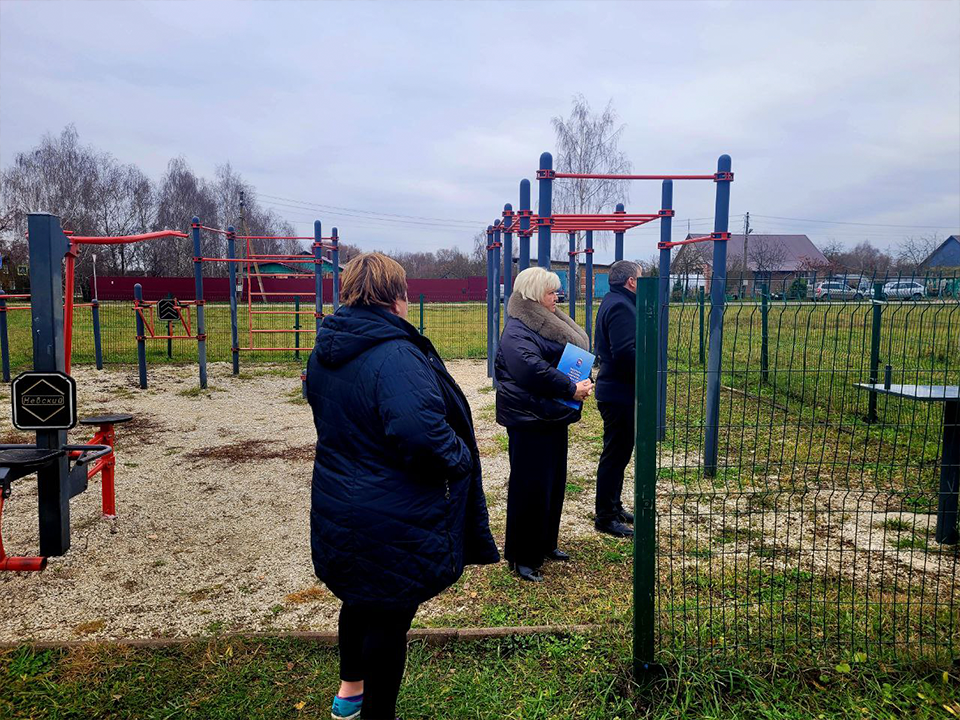 В инспекции территории приняли участие сама Елена Белкина, помощник депутата Московской областной Думы Игоря Исаева и инициатор обращения. На месте было осмотрено пространство рядом с сельским Домом культуры, где в настоящее время размещается воркаут-зона и футбольное поле, оборудованное устаревшими самодельными конструкциями.