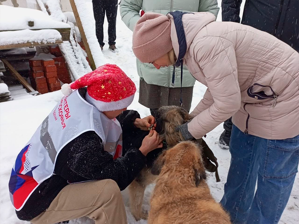 Активисты волонтерского отряда «Крылья» накануне праздников посетили приют для бездомных животных «Протяни руку лапам», чтобы поздравить его сотрудников с наступающим Новым годом.
