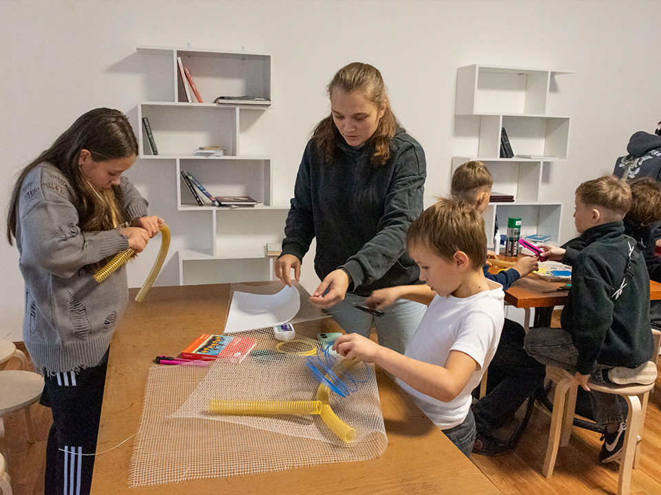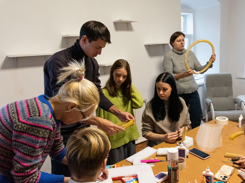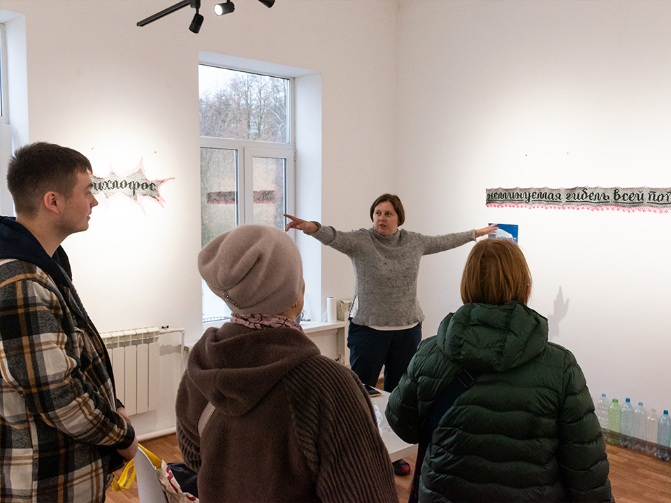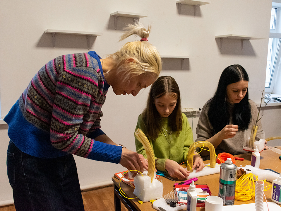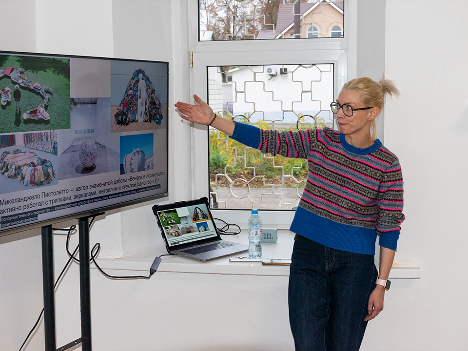 После знакомства с мастерами прошел мастер-класс от художницы Марии Смородиной, посвященный созданию арт-инсталляций в технике «арте повера», то есть «бедное искусство». Суть его в том, что инсталляции можно делать буквально из всего, что попадется под руку, хоть из спичек и желудей.
