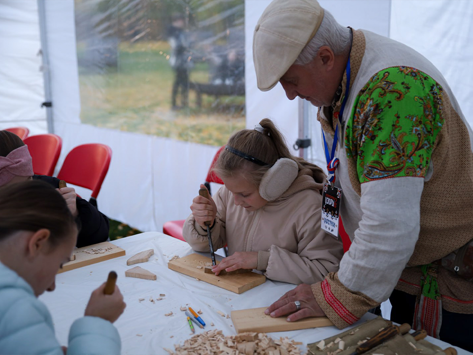 Программа праздника была насыщенной и разнообразной, предлагая гостям любого возраста погрузиться в мир исконных ремесел. Ключевыми точками притяжения стали интерактивные площадки: творческие мастер-классы от современных художников и ремесленников, где каждый мог своими руками создать уникальный сувенир, и уютная изба-читальня со сказками о народных промыслах.