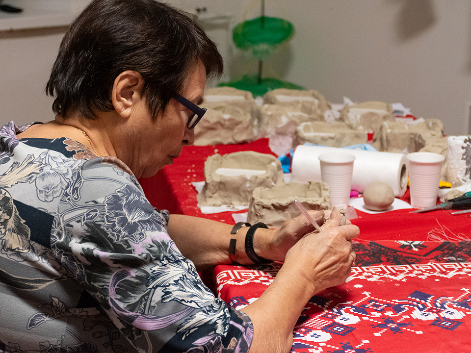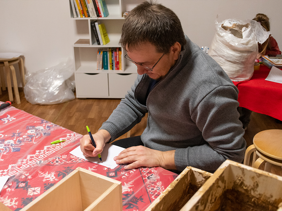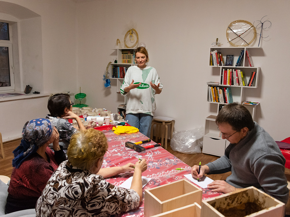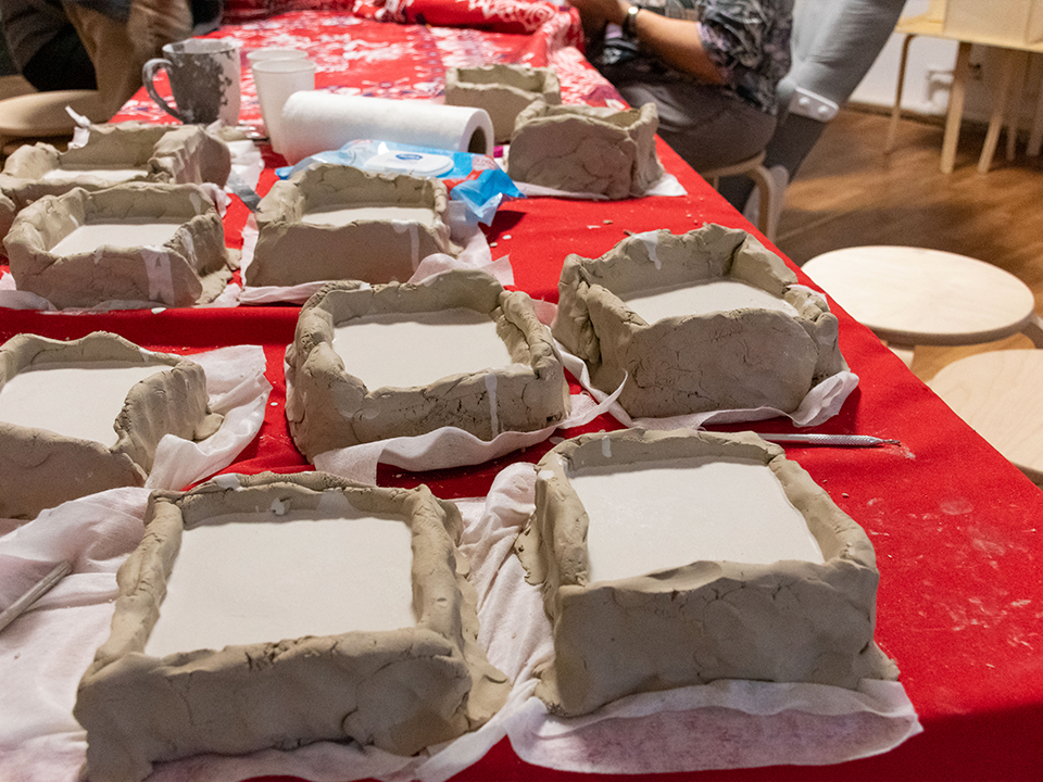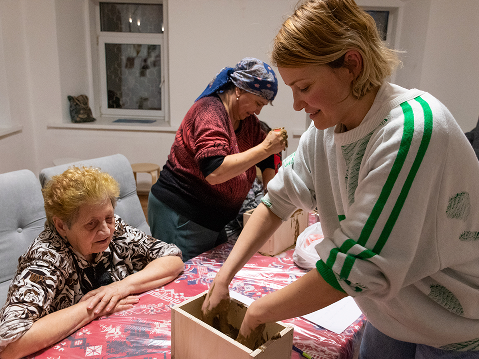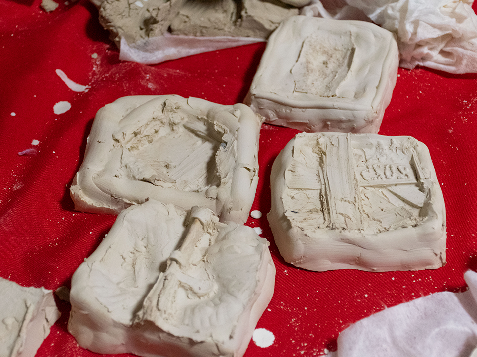 Кроме того, Гарай провела мастер-класс «Память вещей». Участники создавали барельефы, вдохновленные архитектурой и атмосферой Дома Мачтета. За вдохновением они отправились на третий этаж здания, где с помощью глины они сделали слепки понравившихся предметов, будь то гвозди, шпингалет или деревянная текстура стропил.