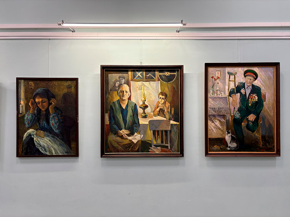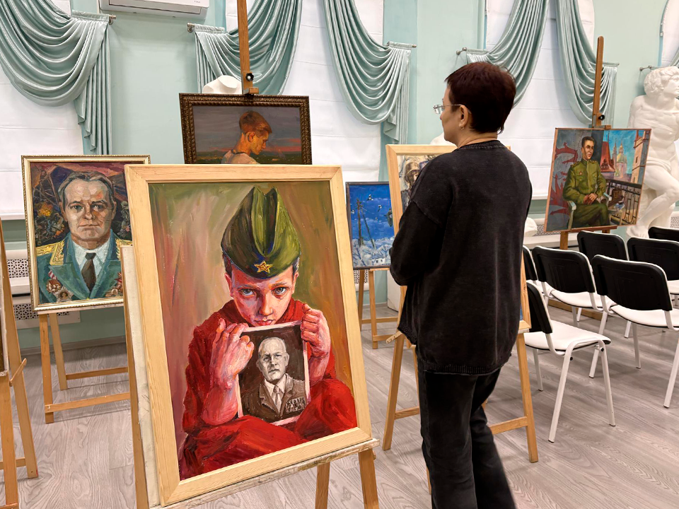 Вниманию гостей представлены 56 живописных и графических работ. Каждое из произведений искусства через призму современного восприятия раскрывает тему подвига и трагедии военных лет, передает дух стойкости и безграничной гордости за поколение победителей.