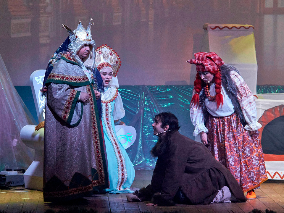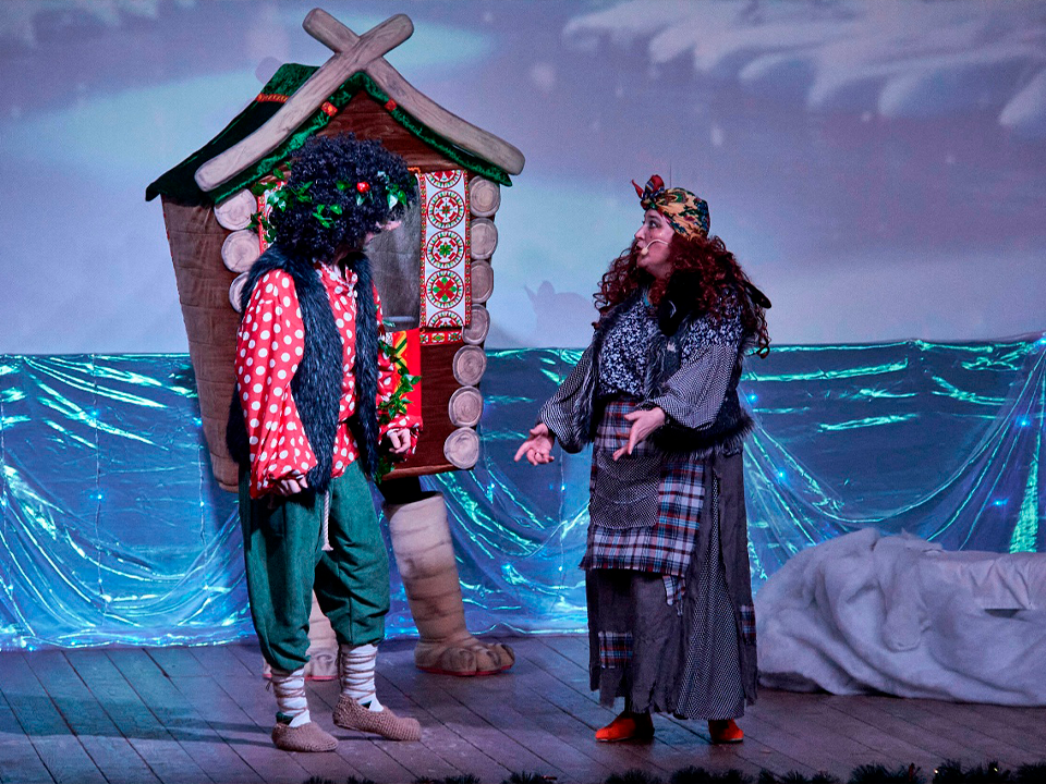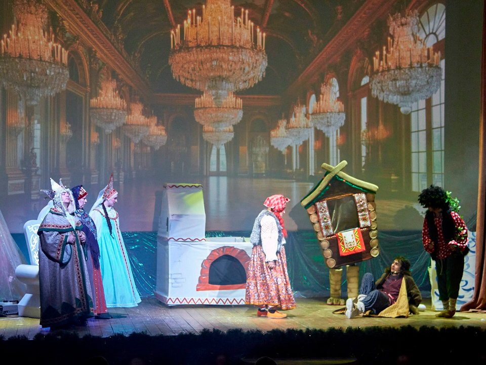 Постановка, основанная на известной русской сказке, полностью захватила внимание детей. Сказочную атмосферу создавали оригинальные декорации, включая «реактивную» самоходную печь и «ходячие» ведра, а также красочные костюмы персонажей и динамичный сюжет.