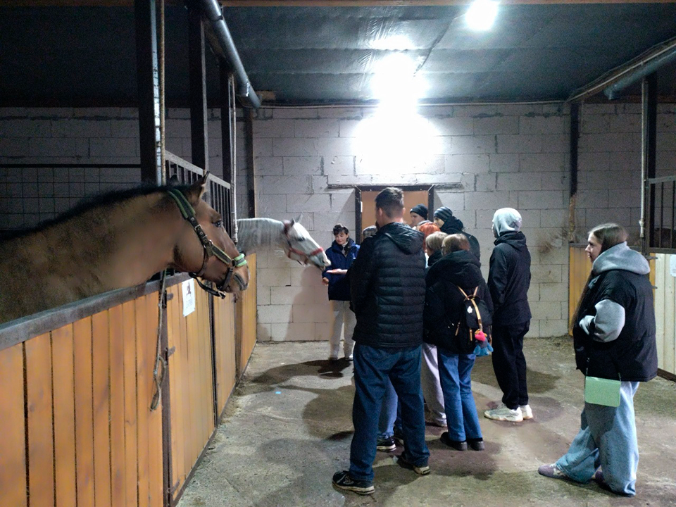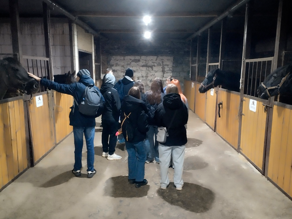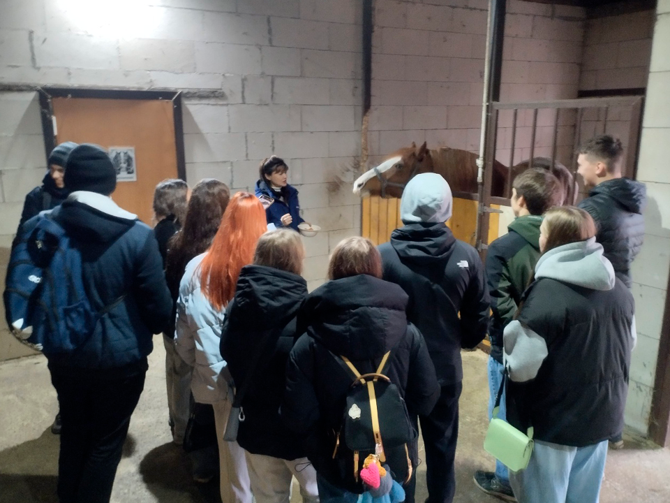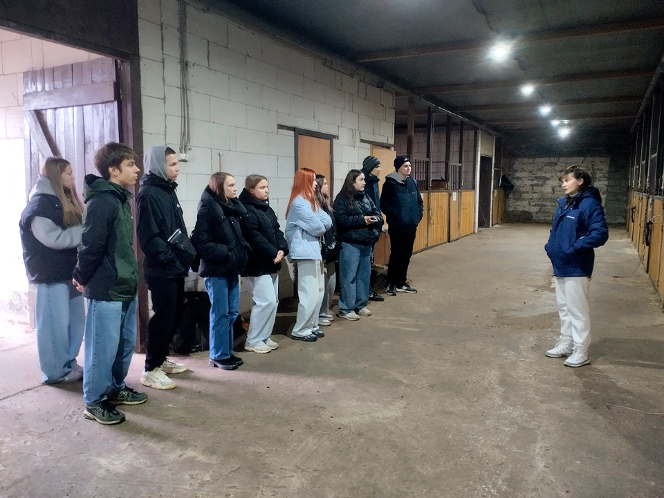 Студенты группы ТГ-311, осваивающие специальность «Туризм и гостеприимство» в рамках федерального проекта «Профессионалитет», посетили с учебным визитом конно-туристическую базу. Поездка, организованная куратором Татьяной Асоновой, была нацелена на изучение организации работы современных туристических объектов.