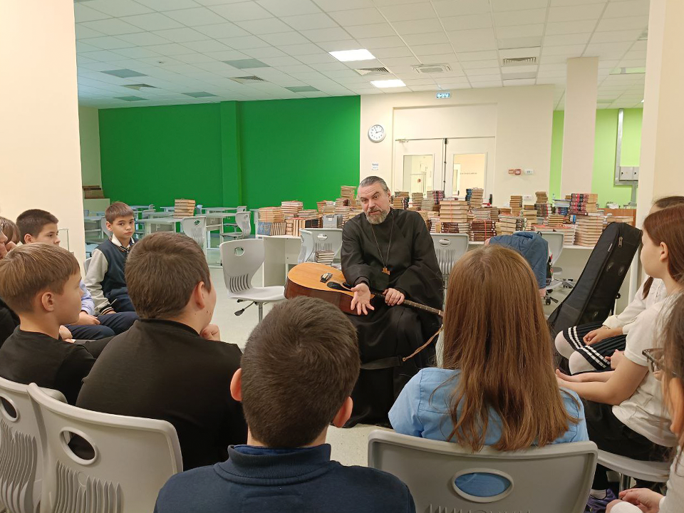 В рамках недели русского языка и литературы в средней школе №1 прошло необычное мероприятие «Музыка и слово: творческий диалог», участником которого стал настоятель Казанского храма протоиерей Григорий Решетов.
