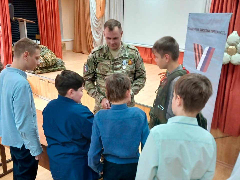 Участники боевых действий поделились со школьниками историями из своего фронтового опыта, рассказав о ценности взаимовыручки, фронтовой дружбы и преданности Родине. Координатор фонда проинформировала аудиторию о видах поддержки, которую организация оказывает ветеранам, и пригласила ребят участвовать в проводимых ею творческих конкурсах.
