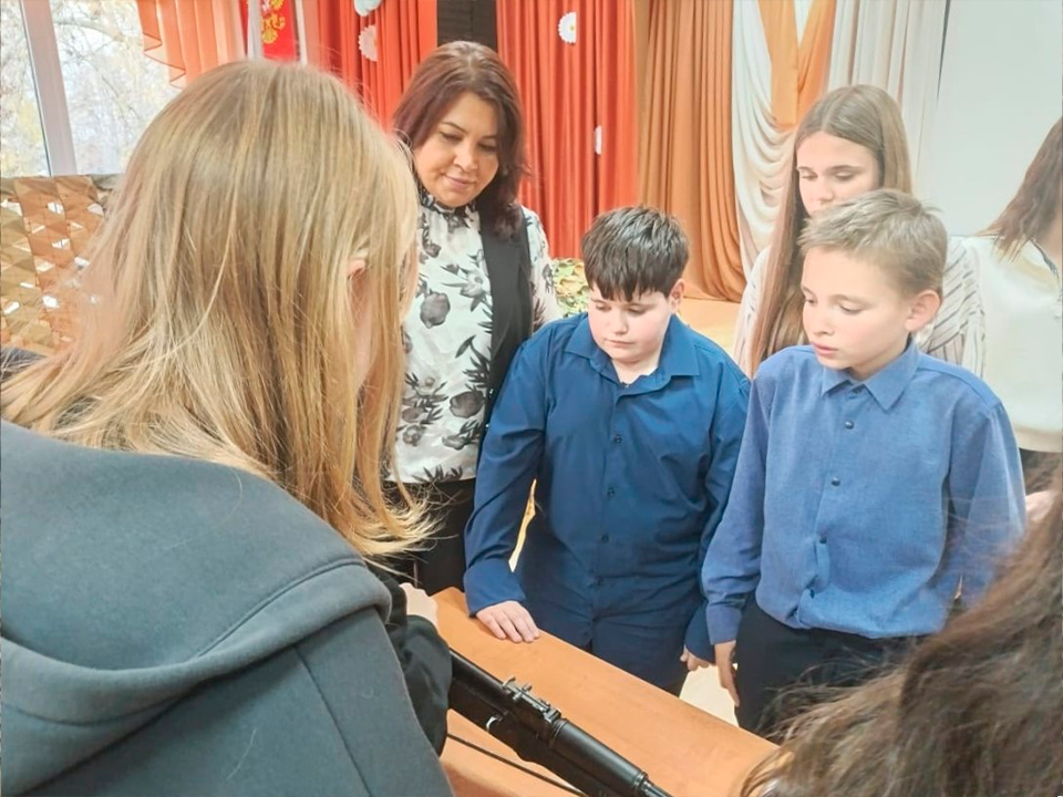 Школьники, в свою очередь, рассказали о своей помощи военнослужащим: изготовлении маскировочных сетей, окопных свечей и написании писем на фронт. В практической части встречи ученики смогли оценить вес армейской экипировки, примерив бронежилеты и подержав в руках автоматы.