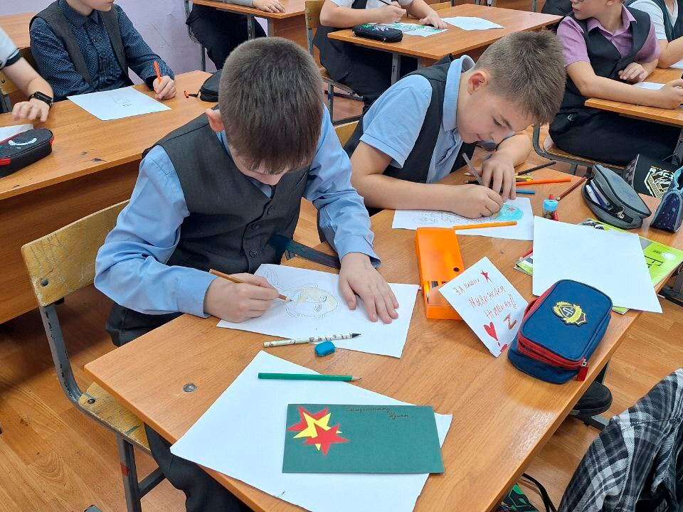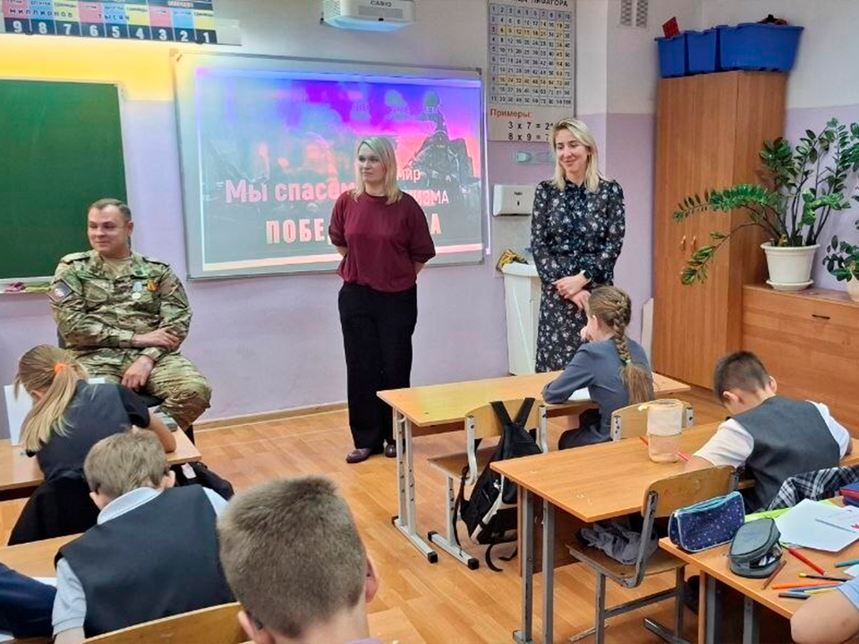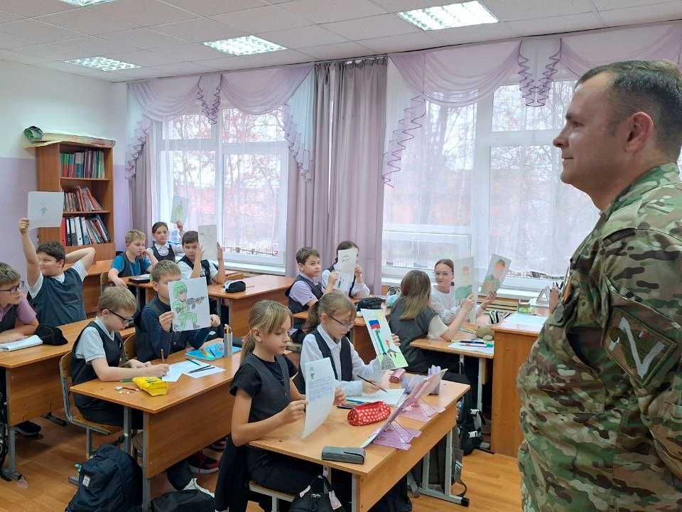 В рамках мероприятия школьники встретились с ветераном специальной военной операции, земляком Сергеем Лоцмановым, который является членом Зарайского отделения Ассоциации ветеранов СВО Подмосковья. После беседы с военнослужащим ребята создали серию художественных работ, изобразив гостя на портретах.