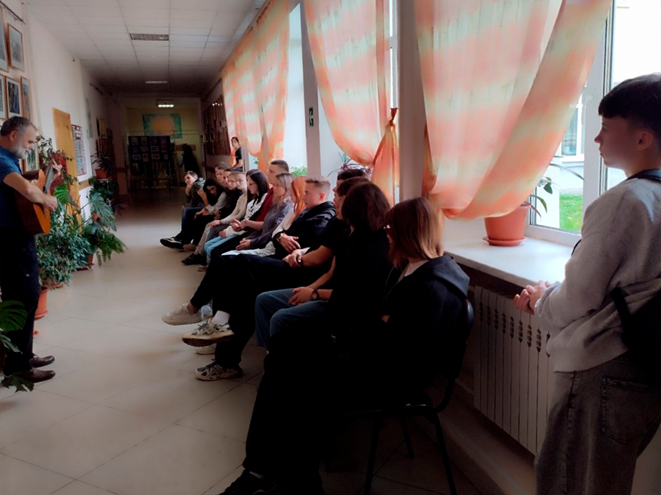 Особой частью встречи стало выступление самого Сергея Петрухина, который не только рассказал студентам об истории создания уникальных кадров, но и исполнил песню из кинофильма «Офицеры».